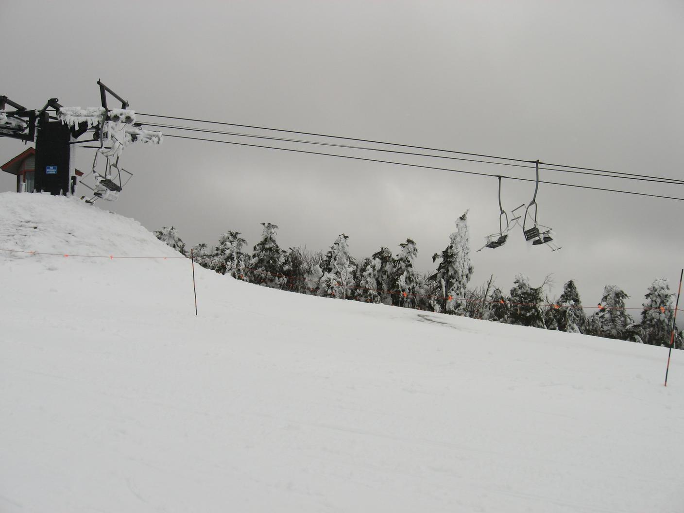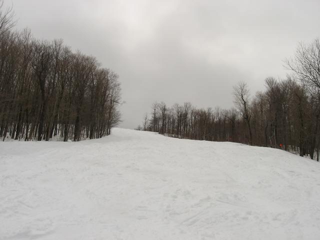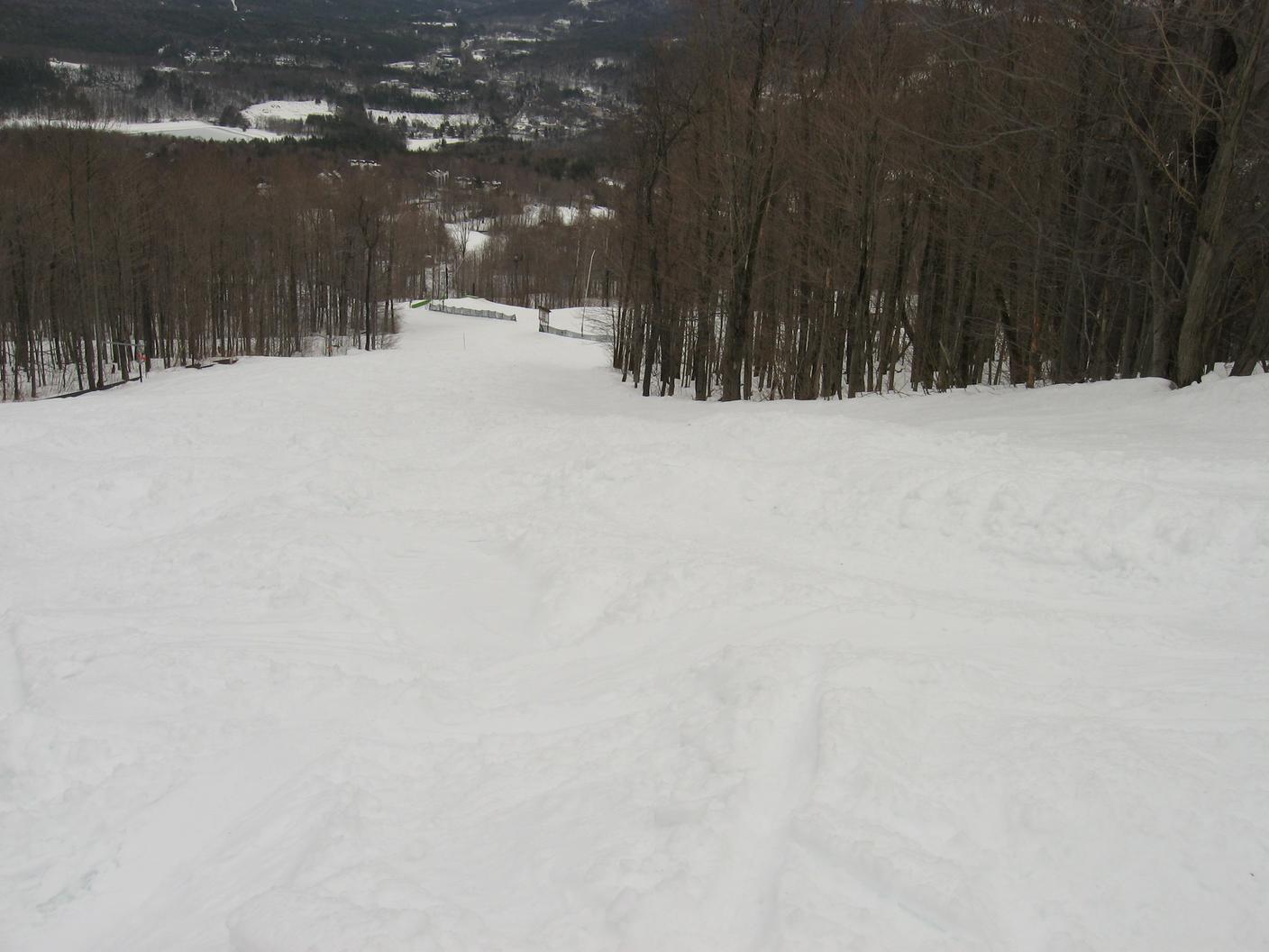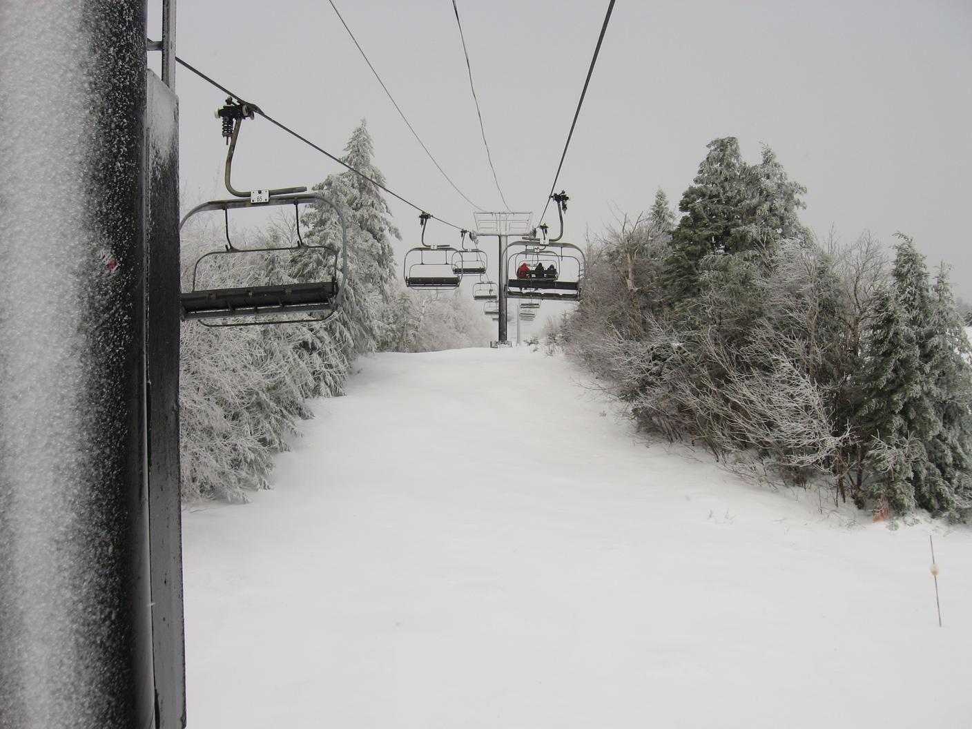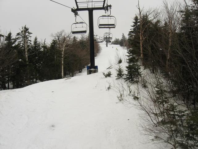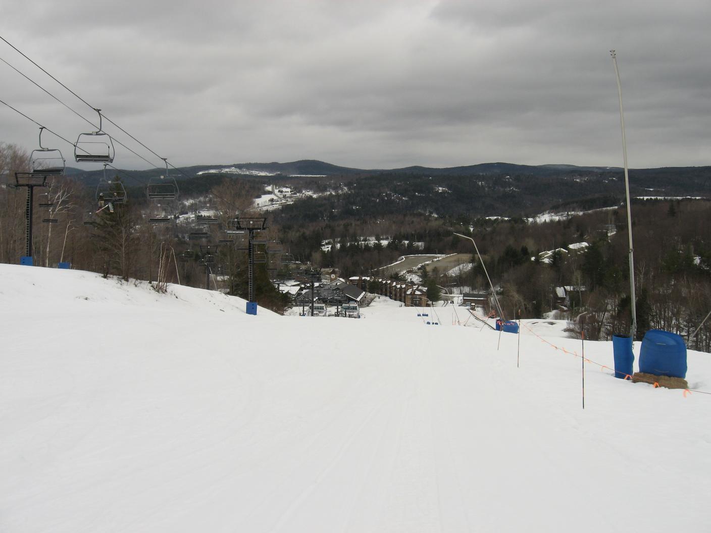 Skiing down Timberline, under the Green Ridge Triple.
