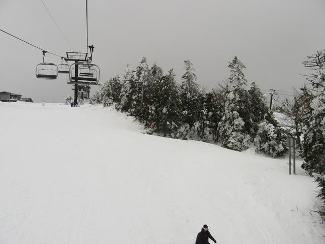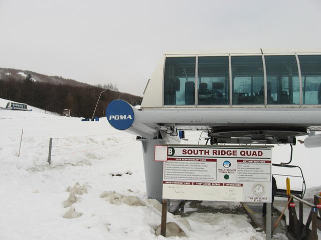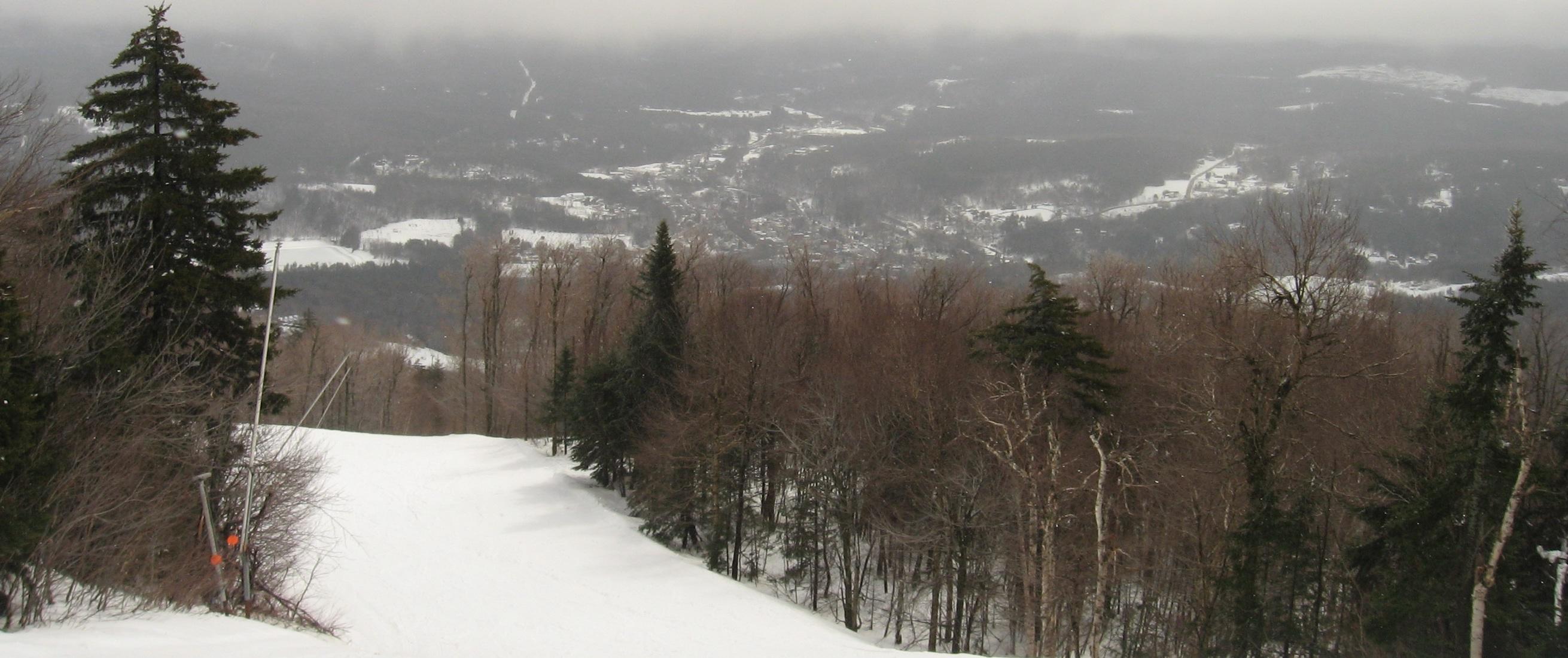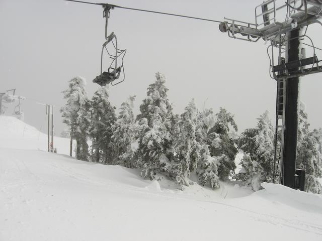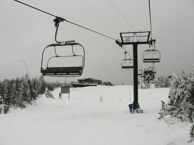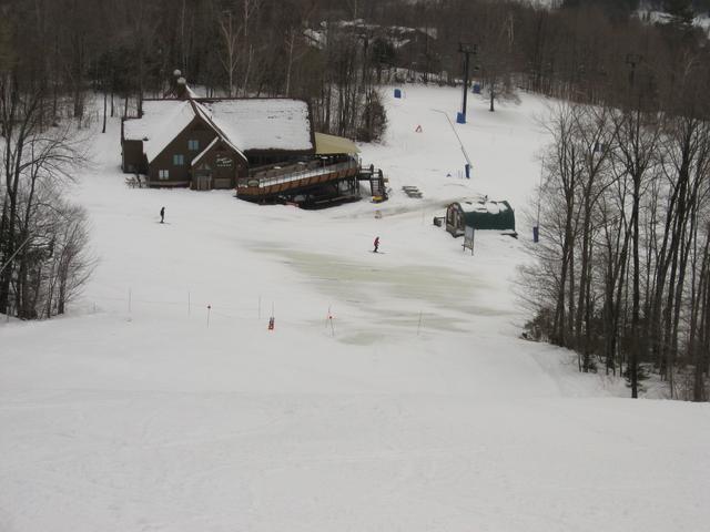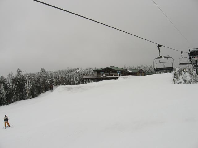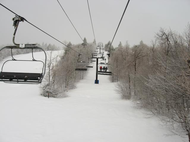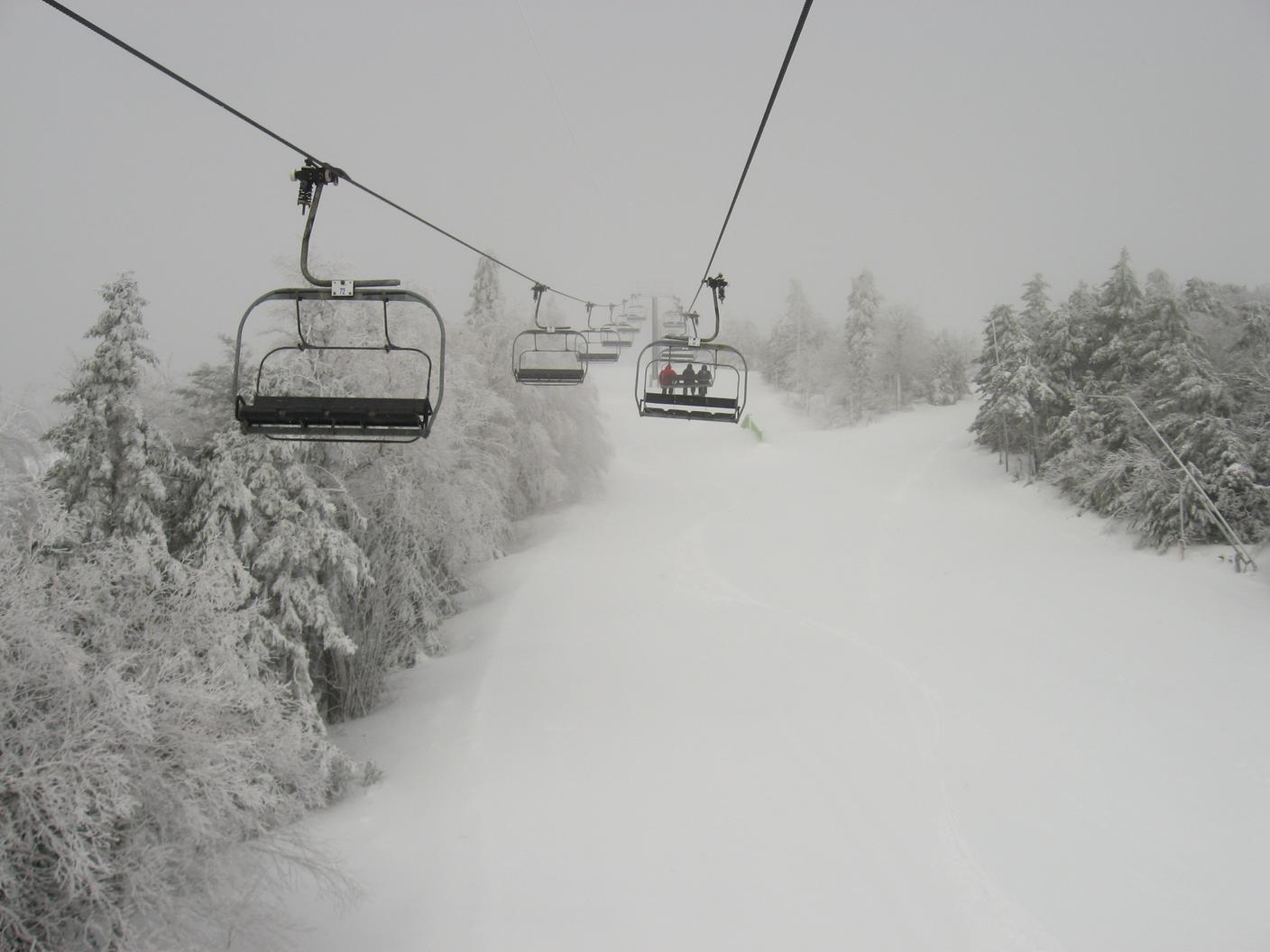 Skiing down Timberline, under the Green Ridge Triple.