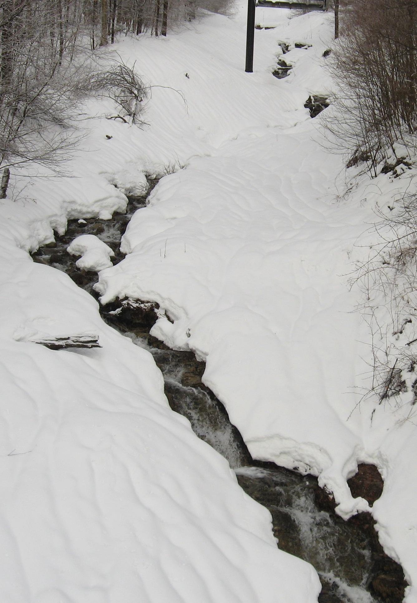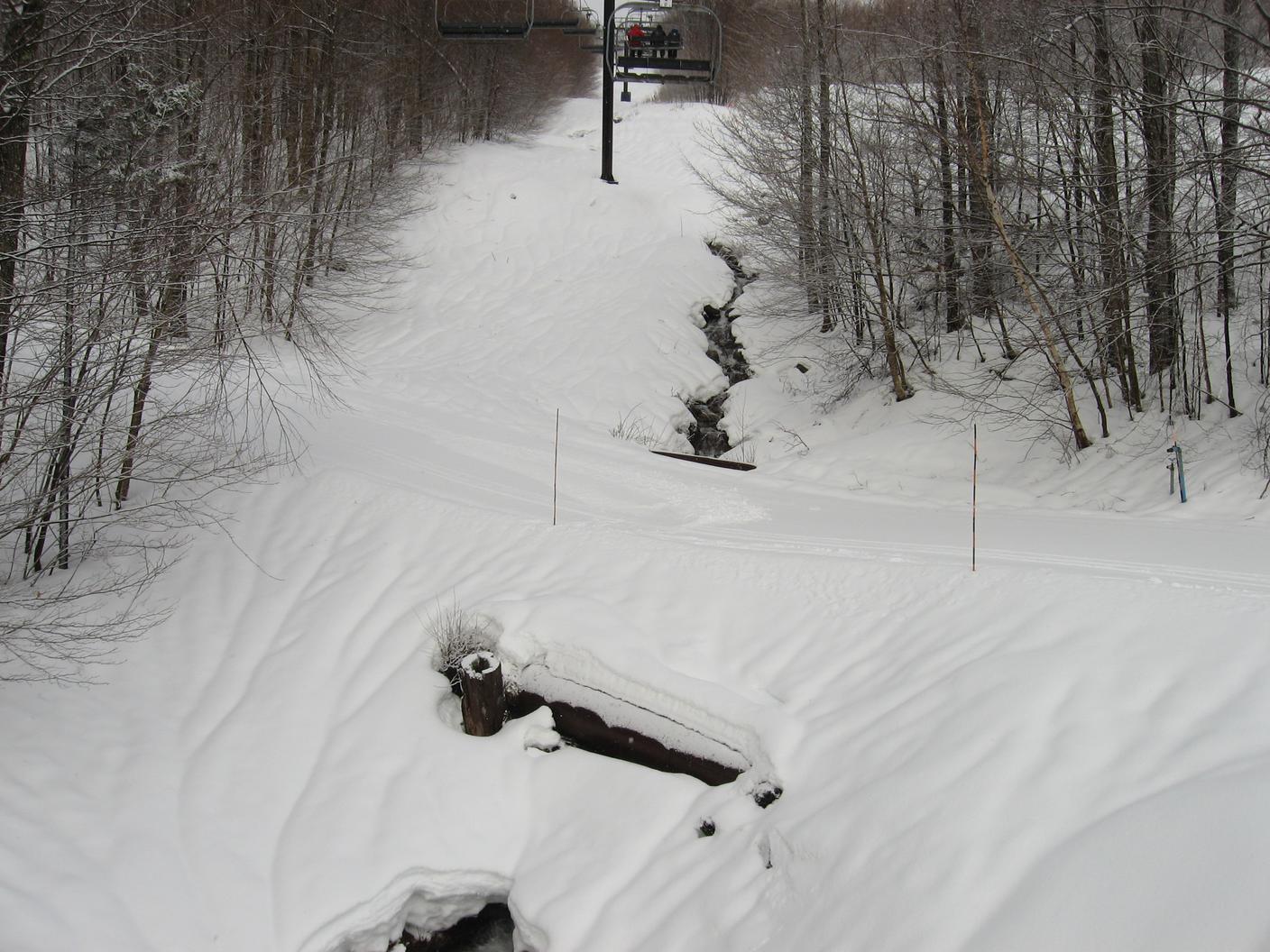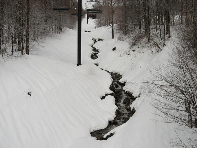 It's April, so the stream under the lift is running high.