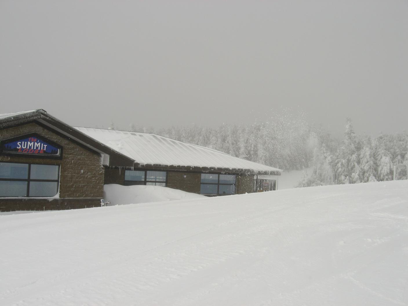 The main lodge at the start of the day. There's a few inches of slush