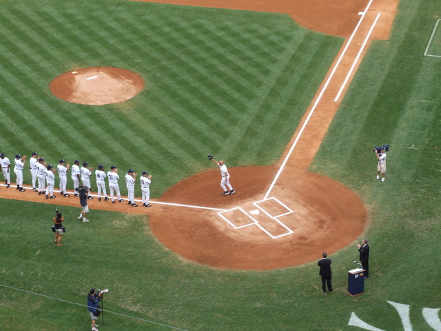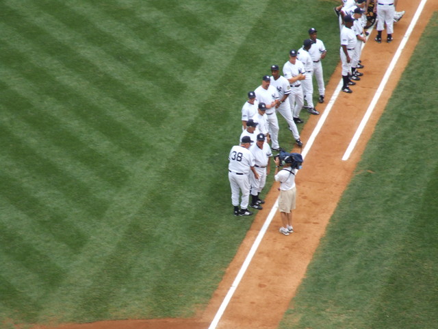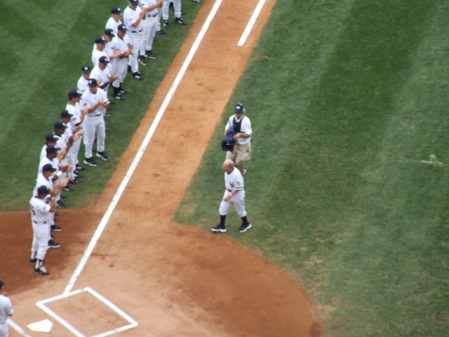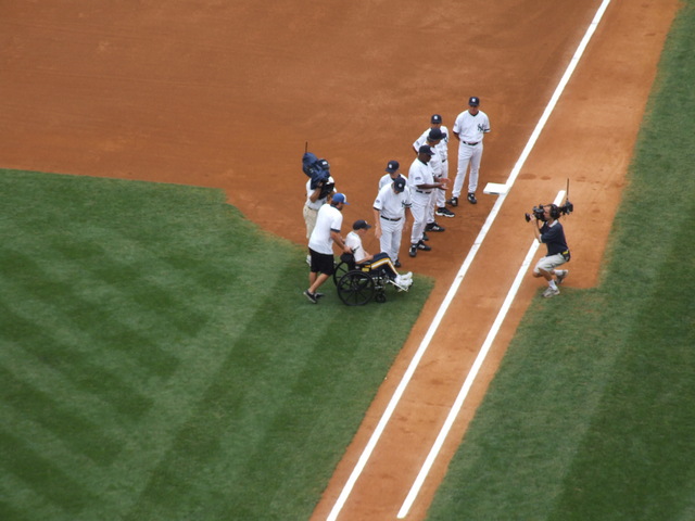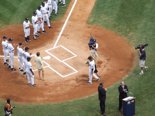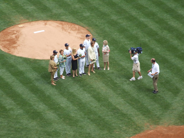 After the players, the widows of five Yankees old timers were introduced representing their husbands.