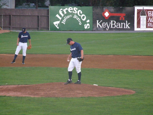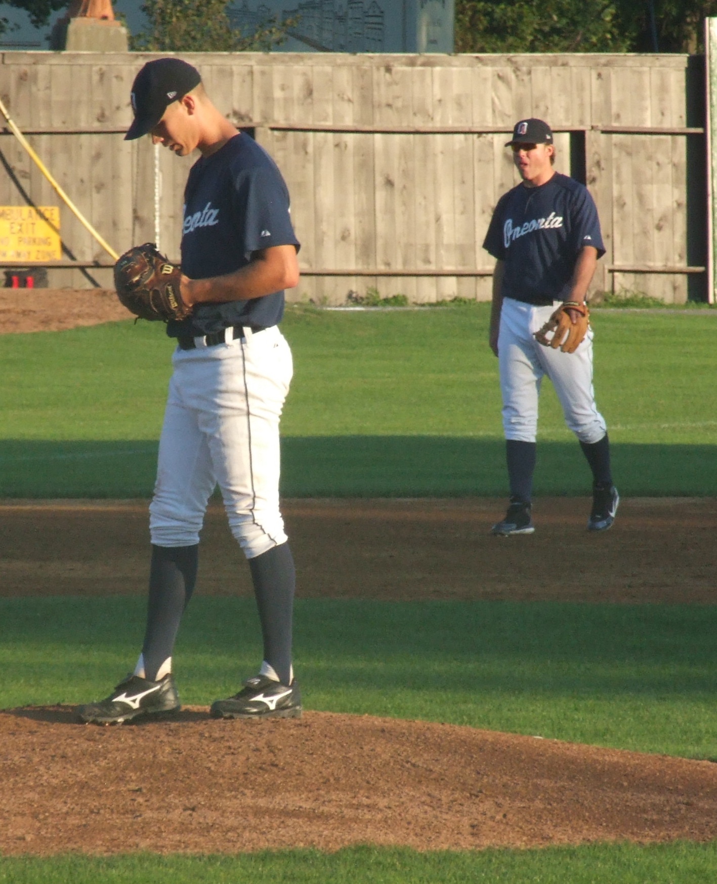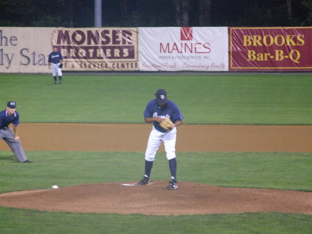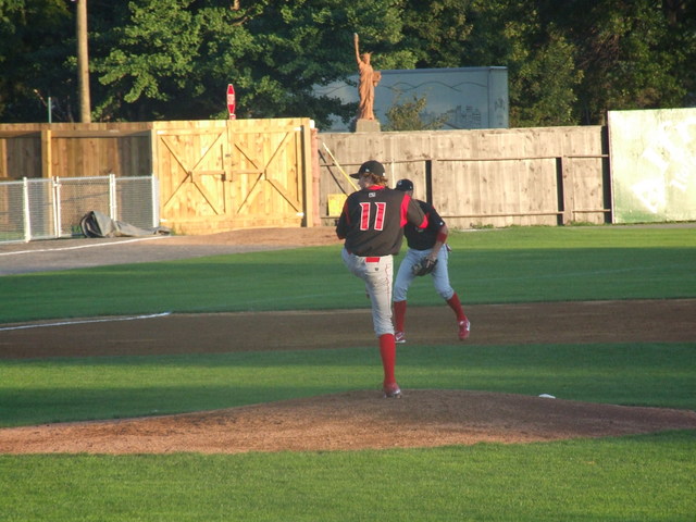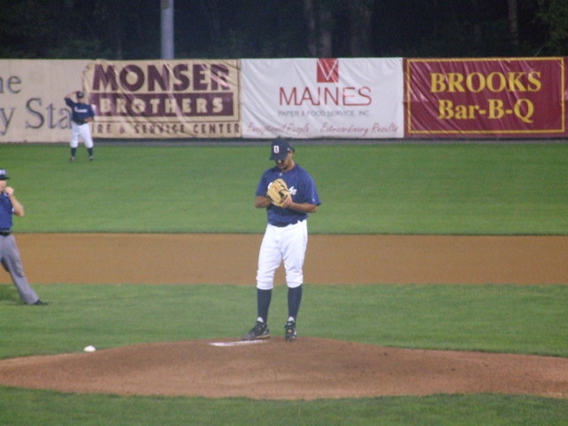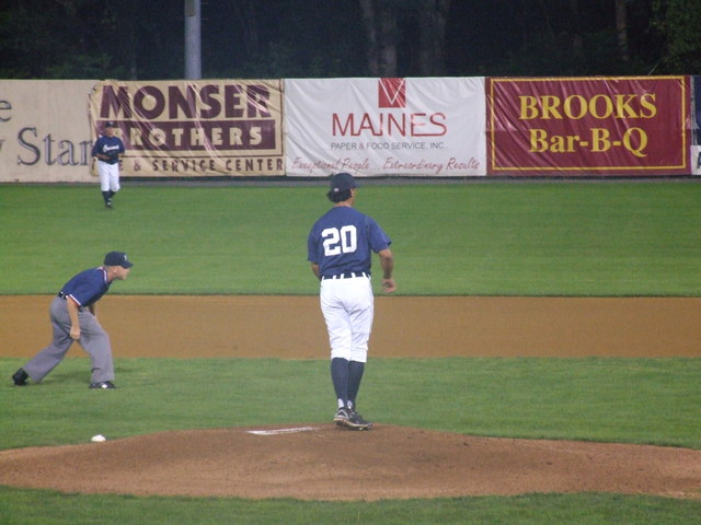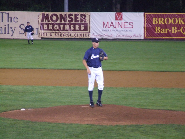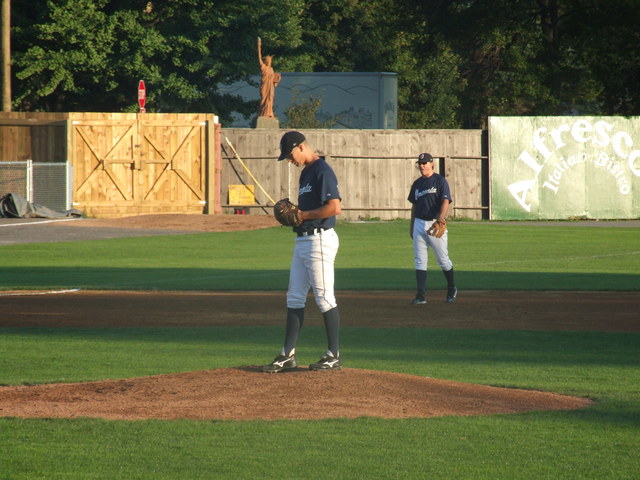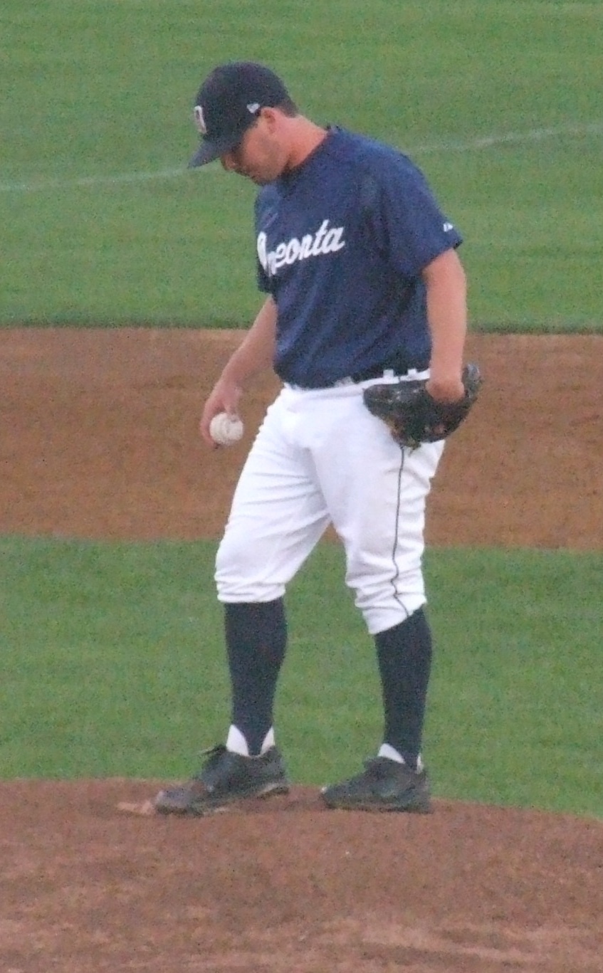 Erick Chrichton on to pitch for Oneonta.