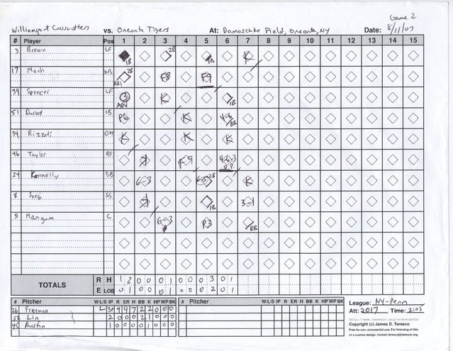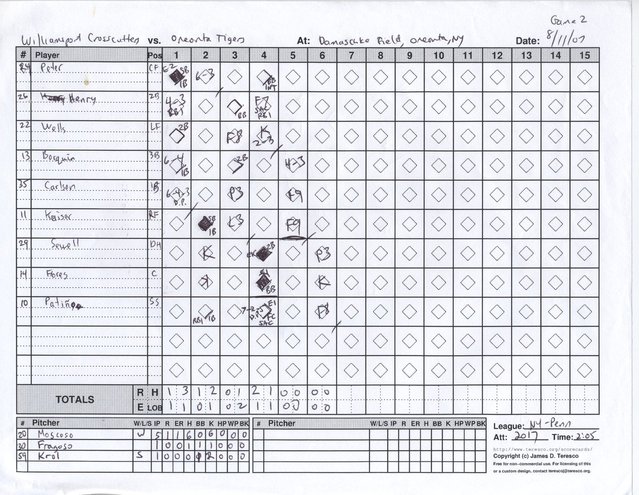 Williamsport scorecard from Game 2.