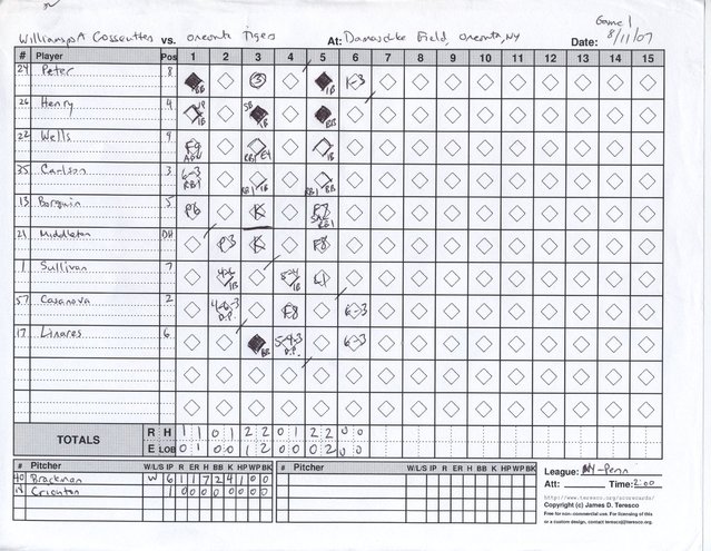 Williamsport scorecard from Game 1.