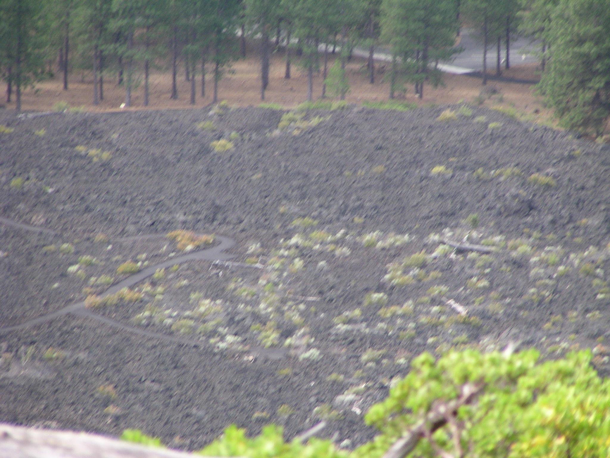 Look down at the walking trail through the lava field.