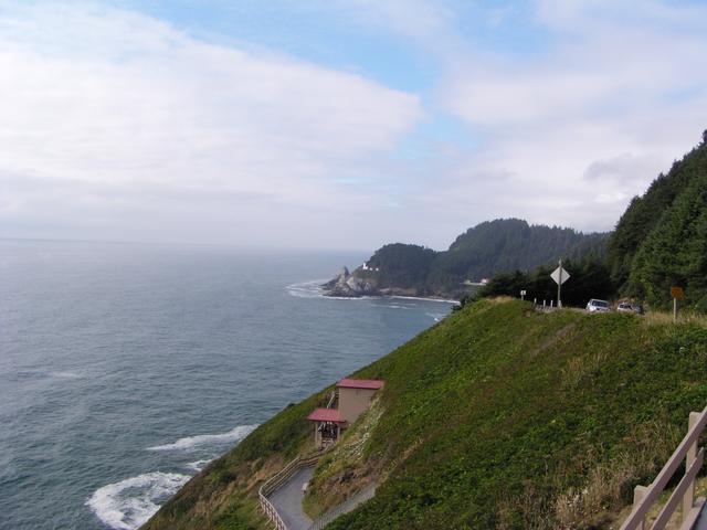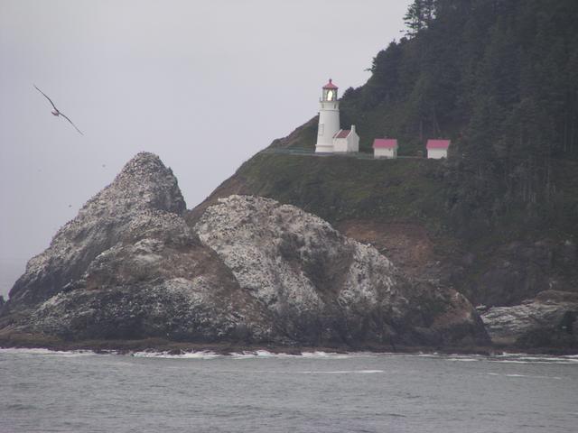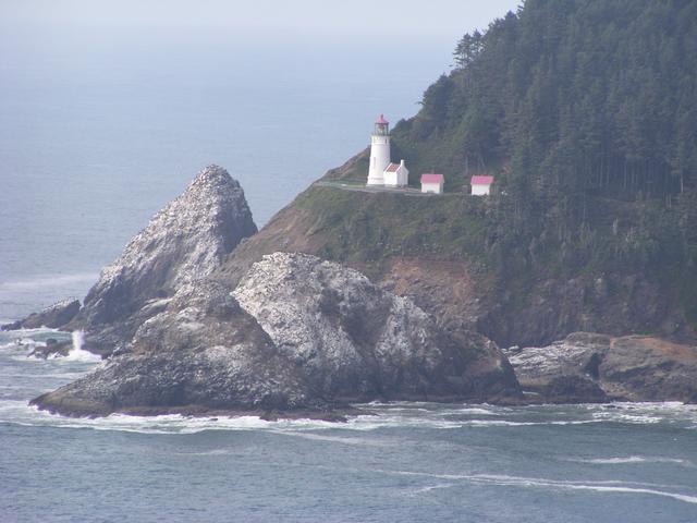 Zoom in on the Heceta Head Lighthouse to the north.