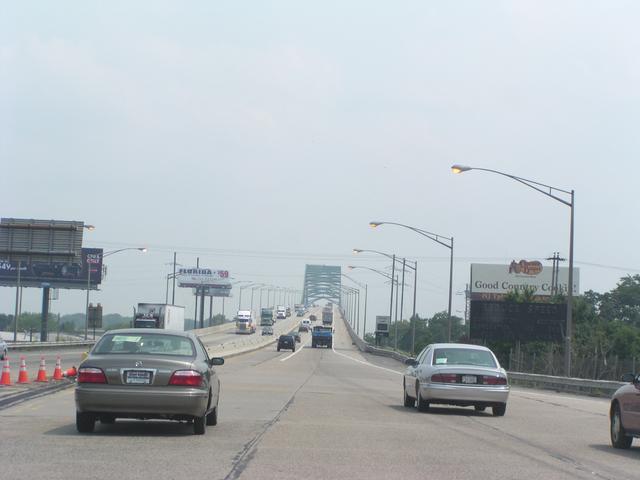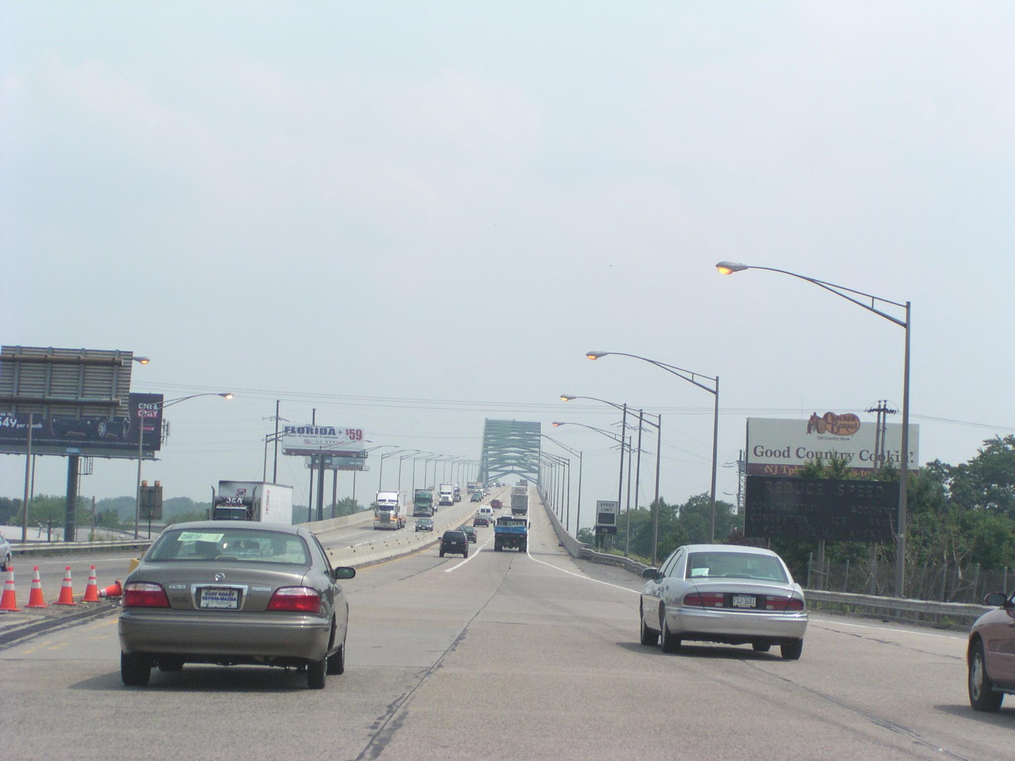 Approaching the bridge across the Delaware to New Jersey on the Pennsylvania Turnpike.