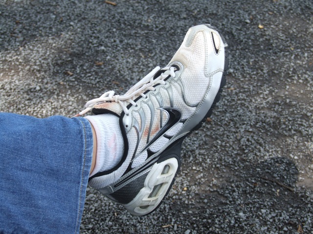 The bloody shoe from yesterday's fall.