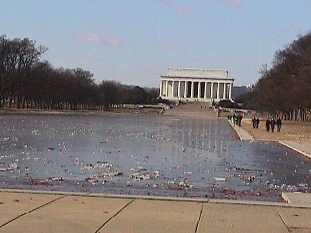 The frozen reflecting pool in front of Lincoln.