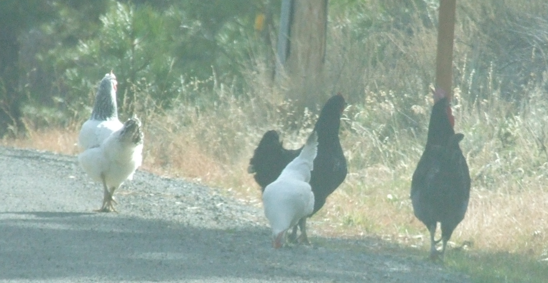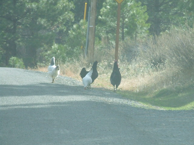 They have some chickens on the road in Calpine.