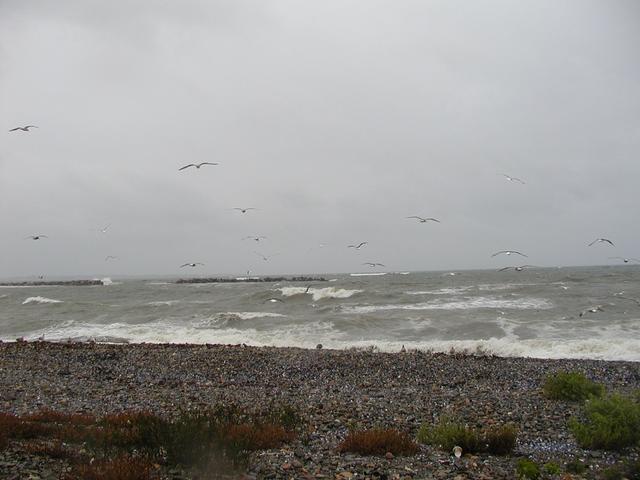 A rough ocean on a stormy day in Winthrop.