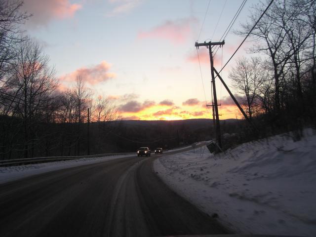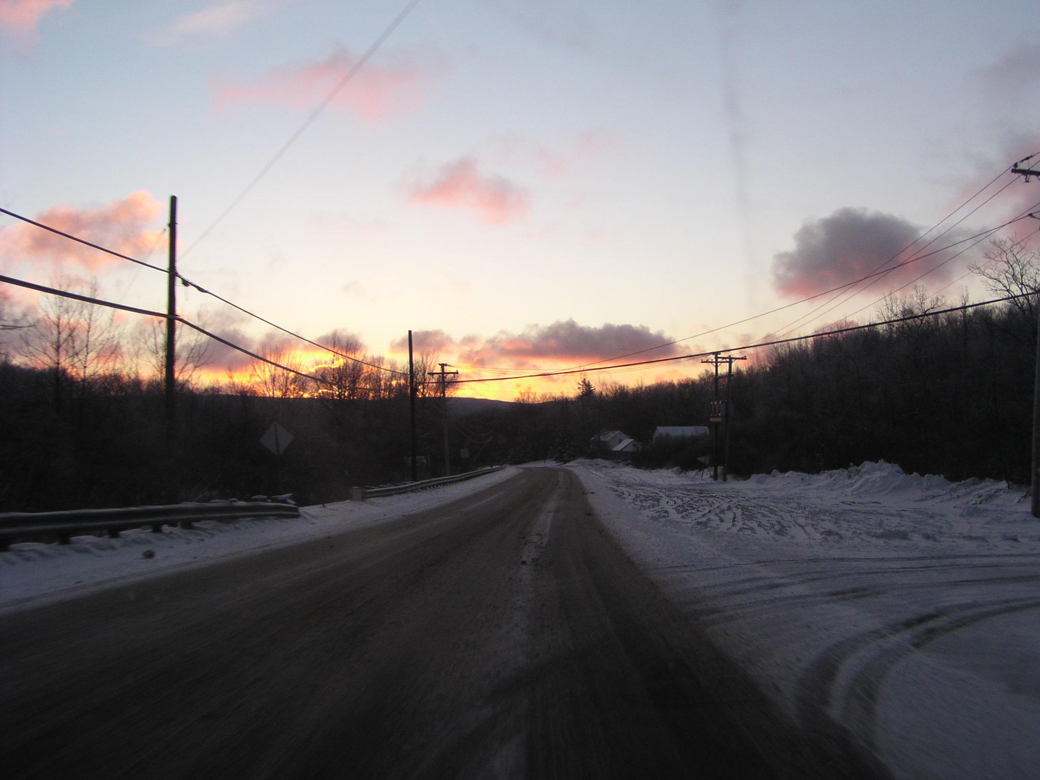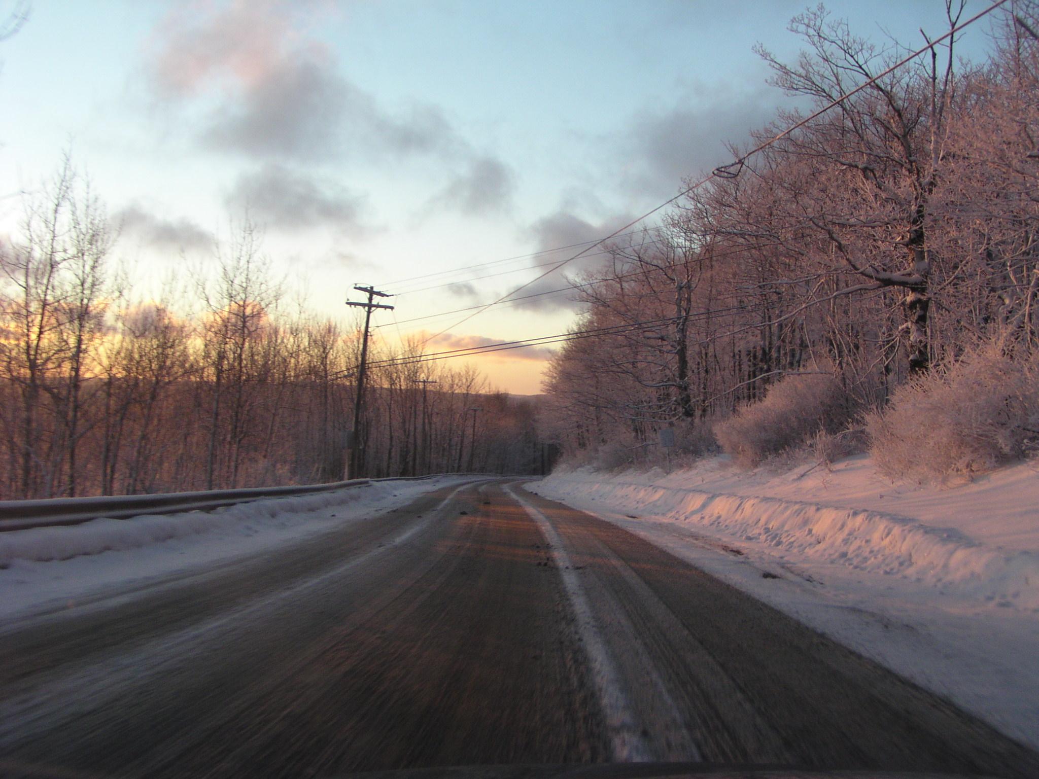 Nasty roads at dawn on Rte 2 in Florida, Massachusetts.