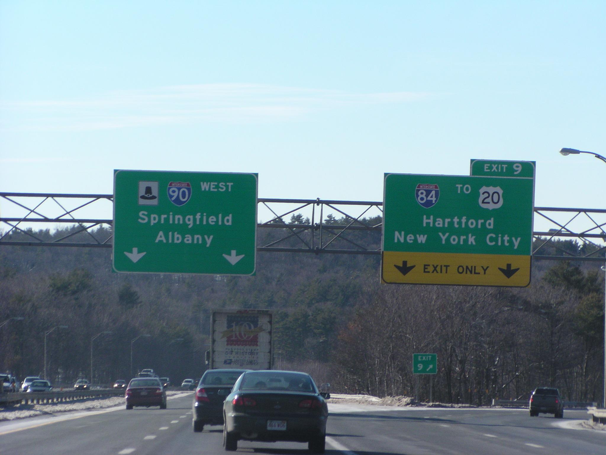 Mass Pike eastbound approaching I-84.