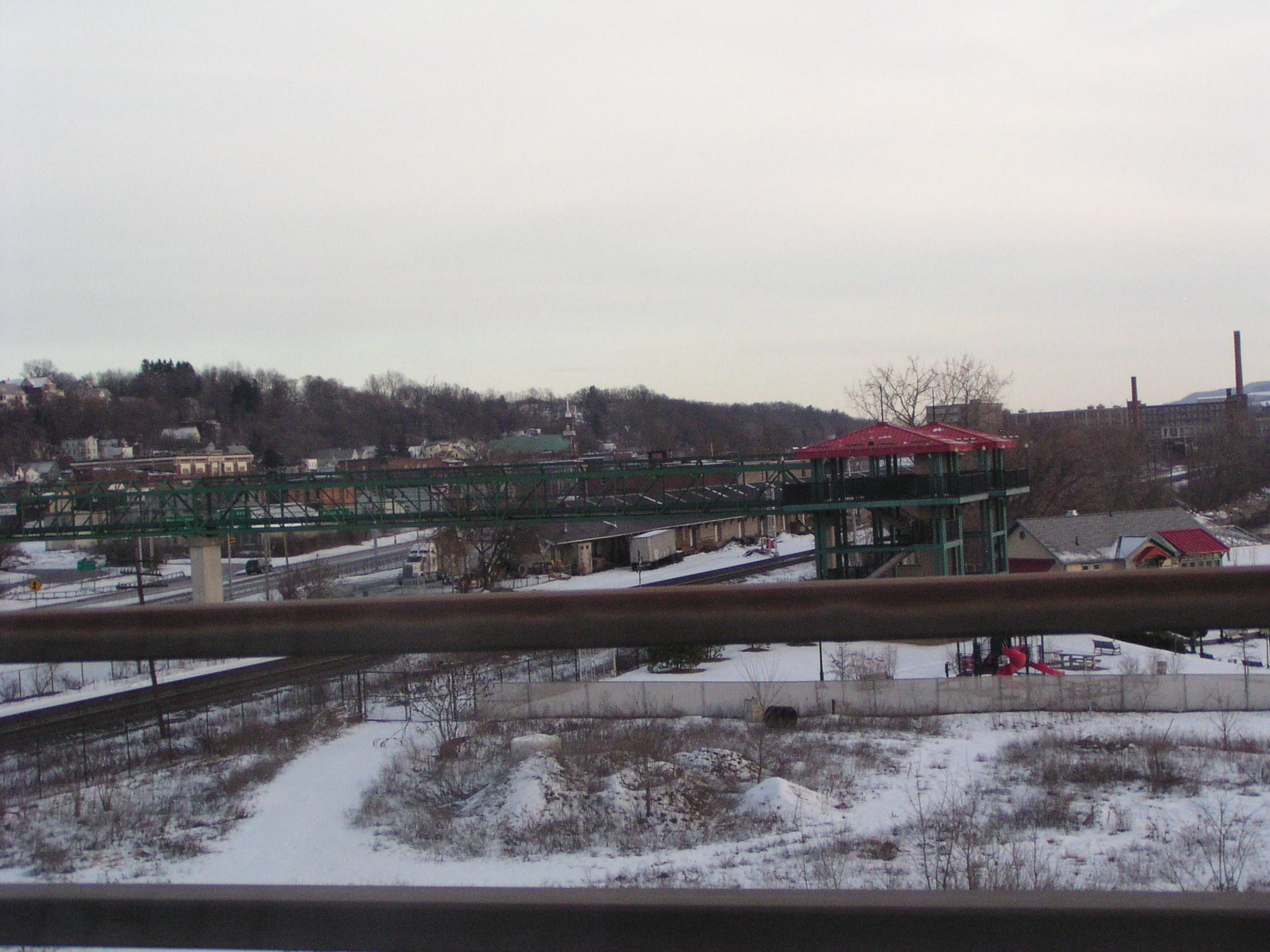 Riverlink Park in Amsterdam from NY 30 North across the Mohawk River.
