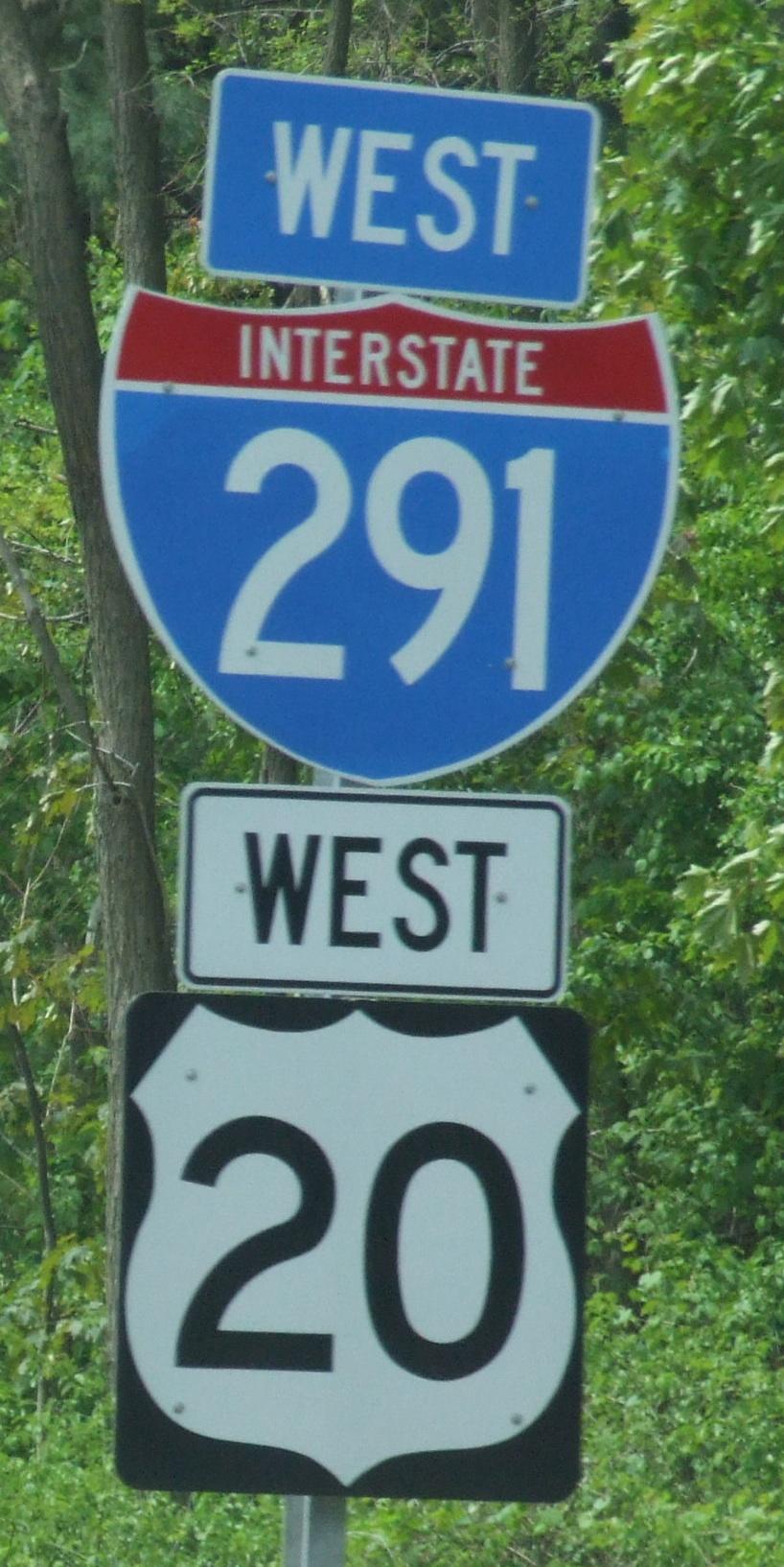 US 20 is routed on I-291 for a while.
