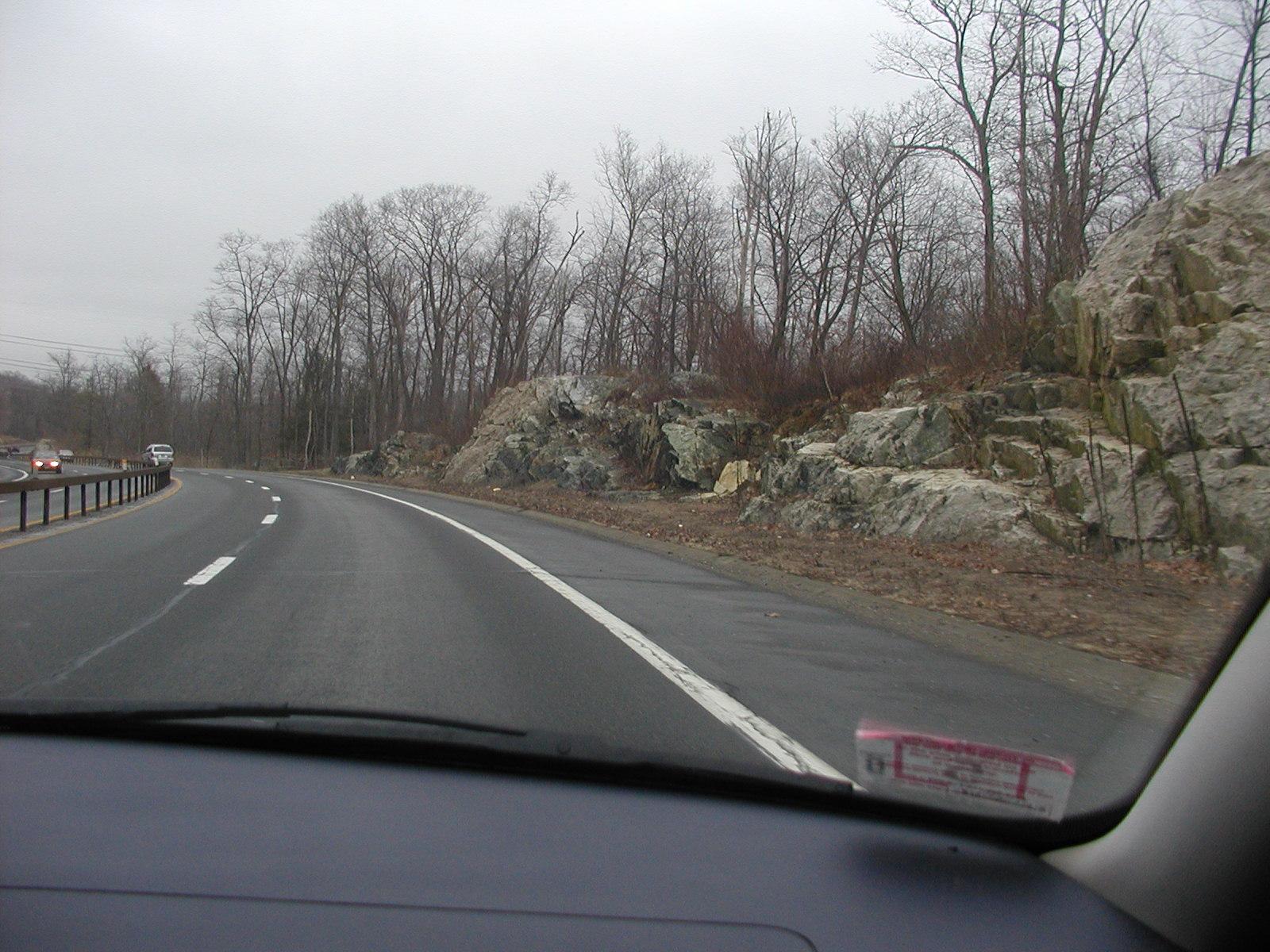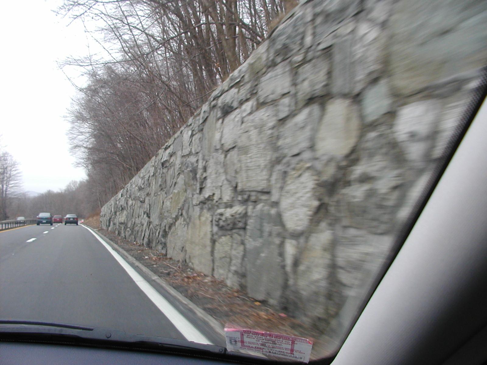Heading north on the Taconic. Yes, it's a stone wall just inches away from the travel lane.