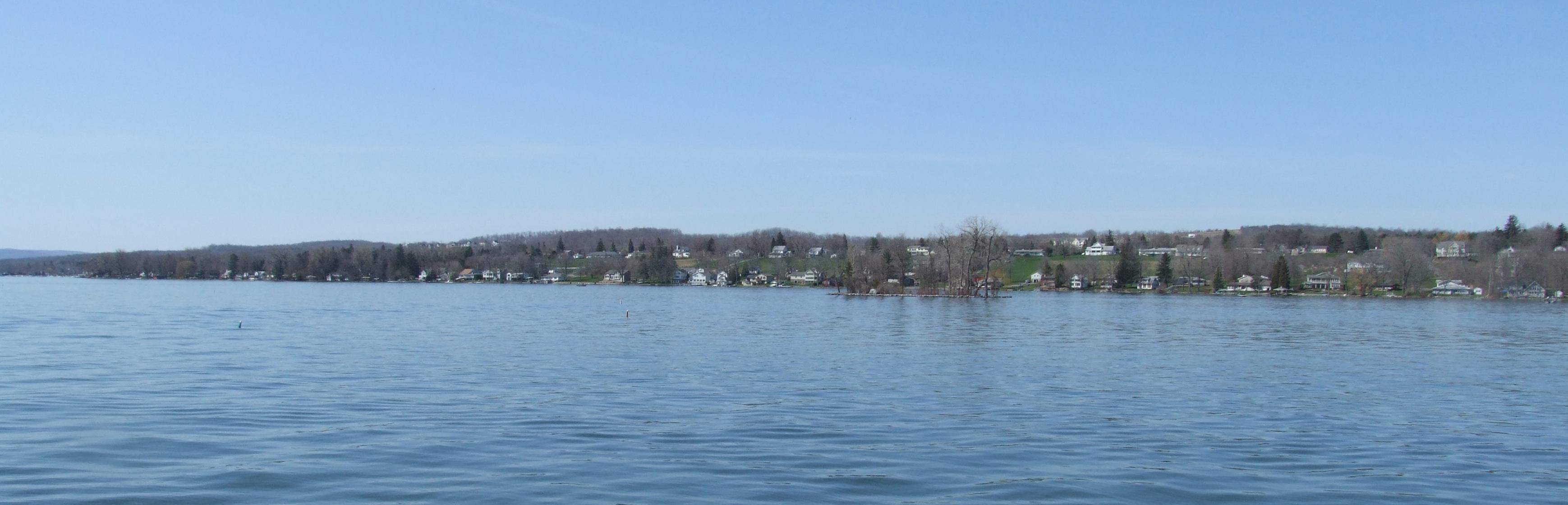 On the pier, which goes out into Canandaigua Lake.
