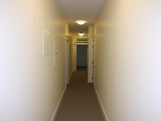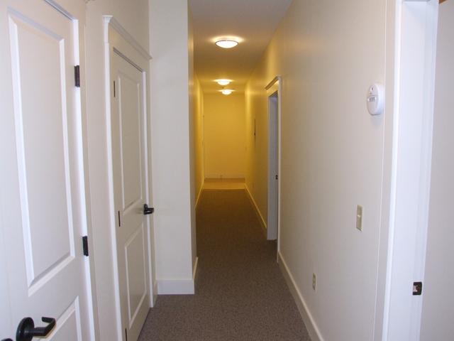 Bowling alley hallway connecting to the bathroom and bedrooms.