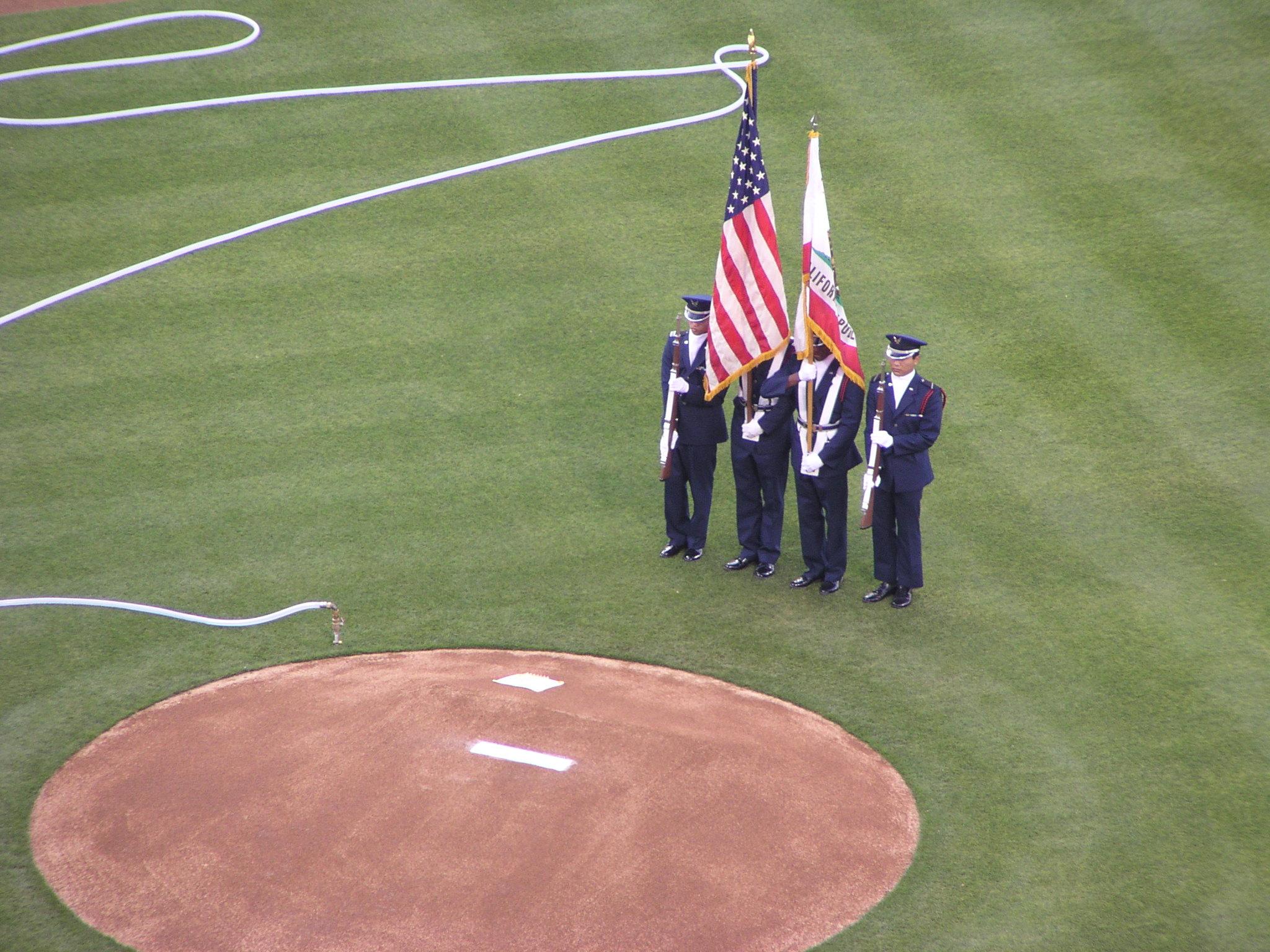The Padres take the field.