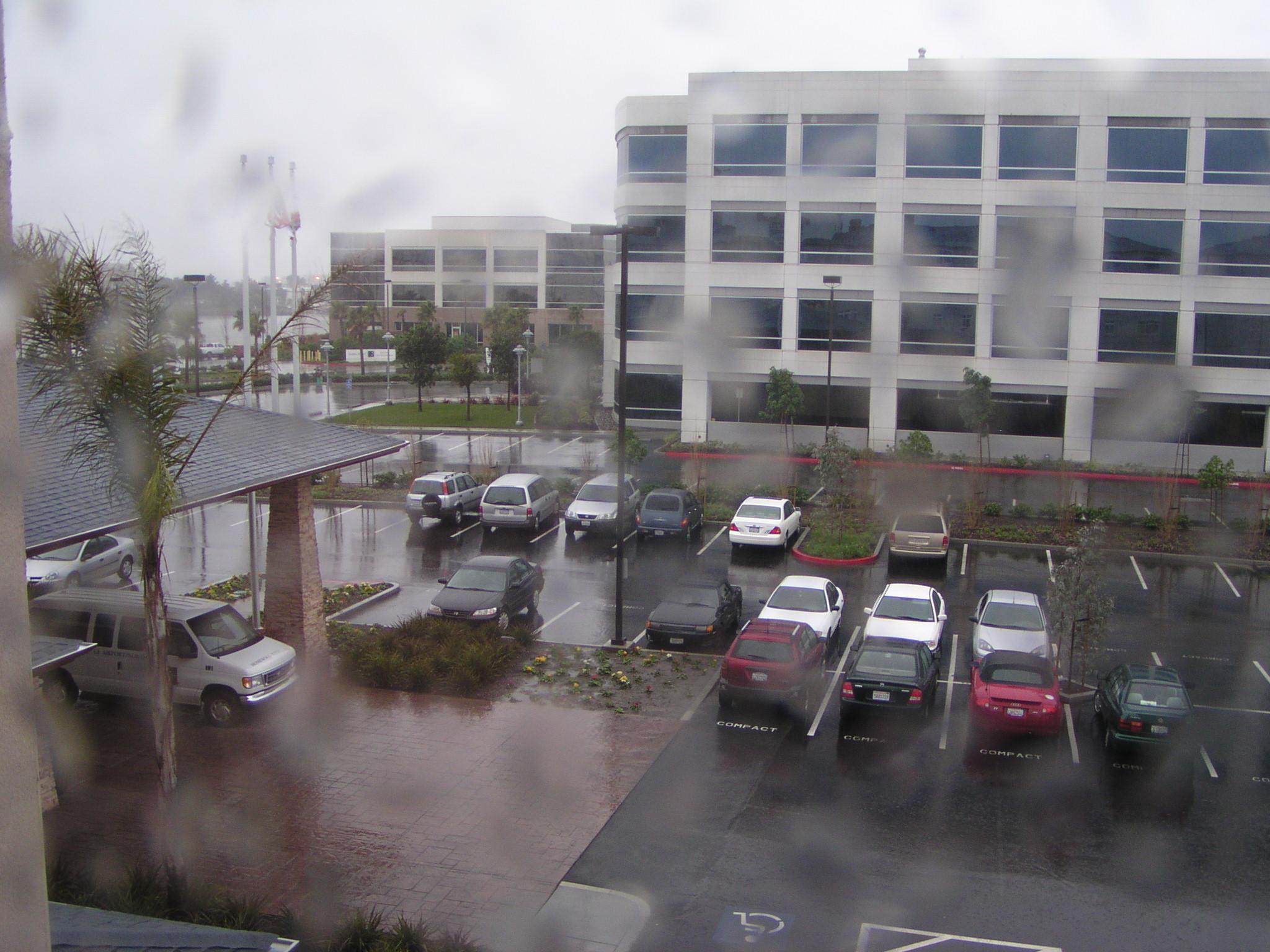 View from the room at the heavy morning rains.