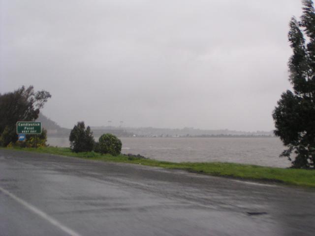 Wind-whipped bay near Candlestick along US 101.
