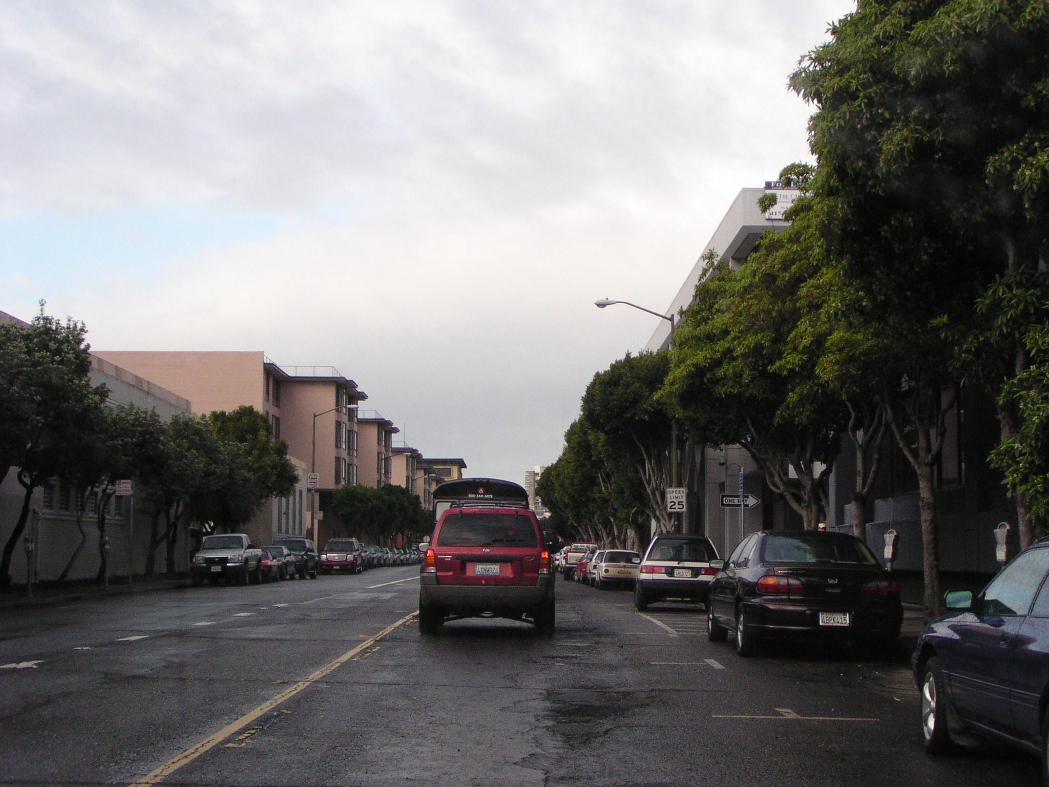 Turning on North Point toward the conference hotel.
