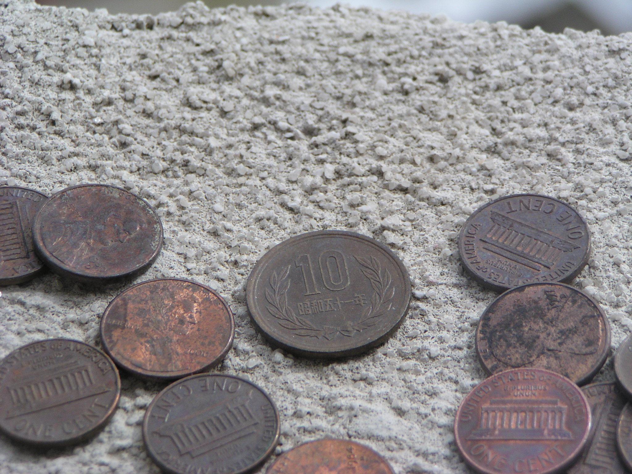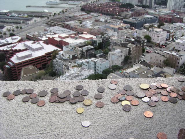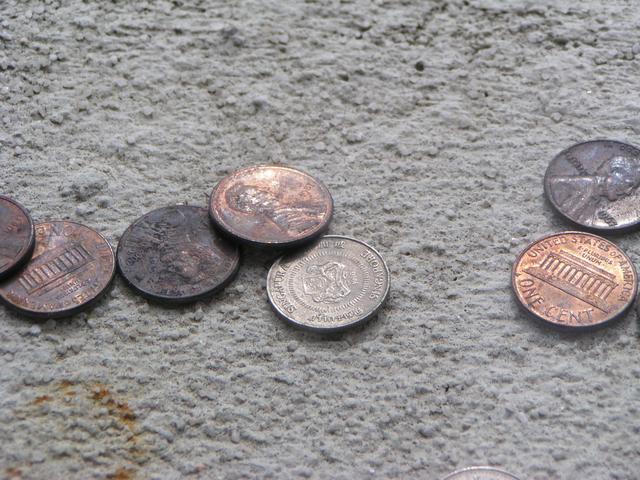 Outside the windows, there are lots of coins that people slip through the cracks.