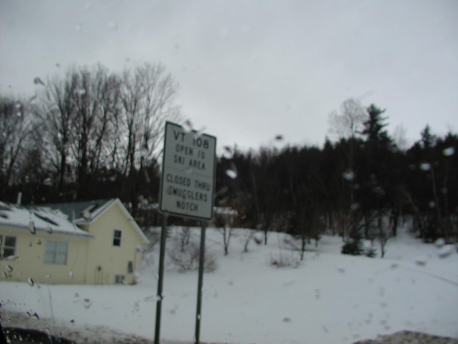 Sign warning of the winter closure of Vermont 108 in Jeffersonville.
