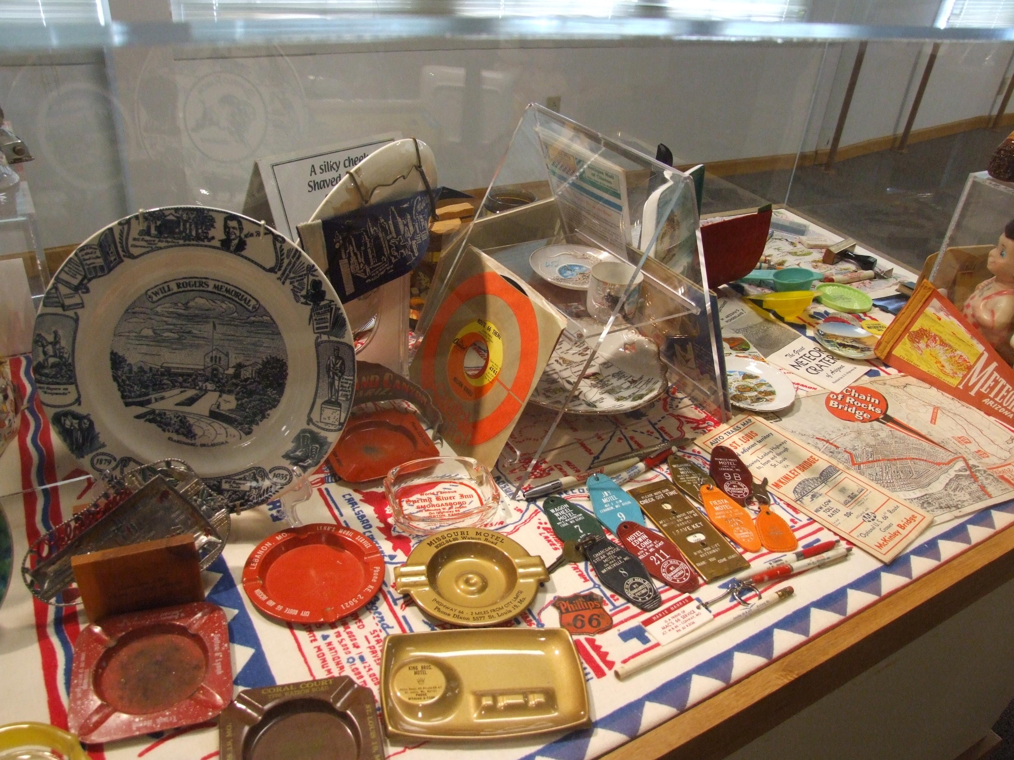 Assorted Rte 66 memorabilia.