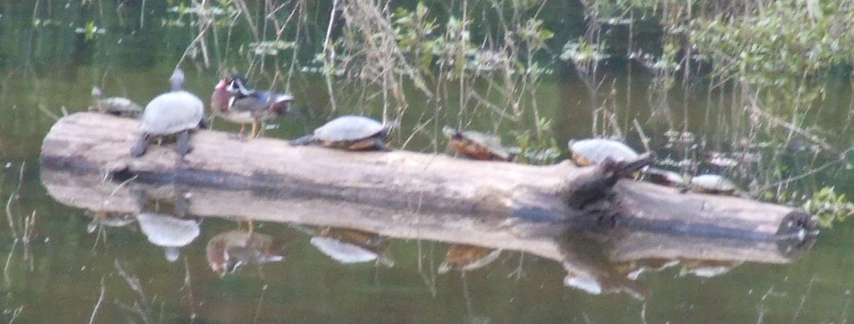 Turtles on a log.