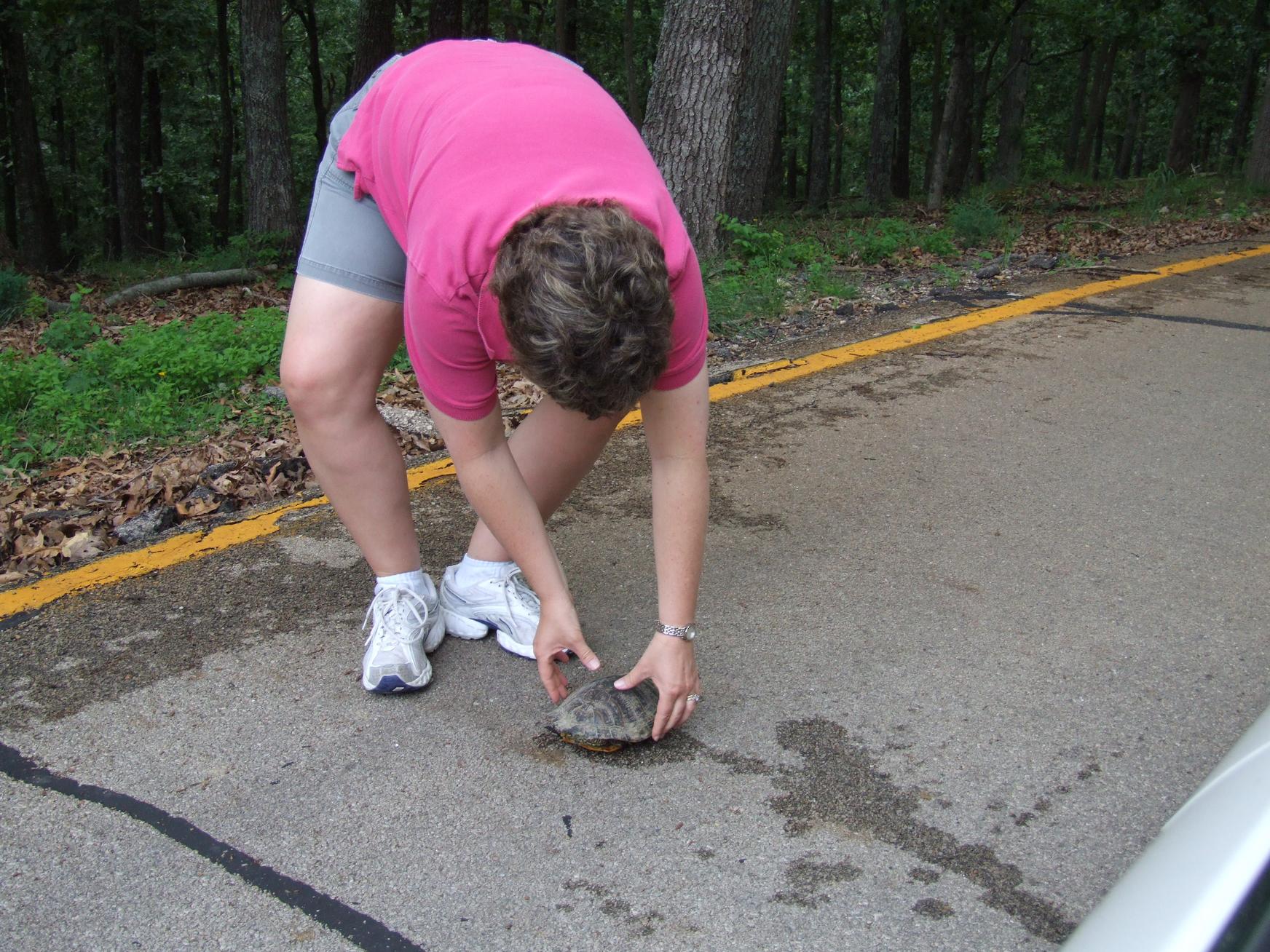 And a turtle in the road.