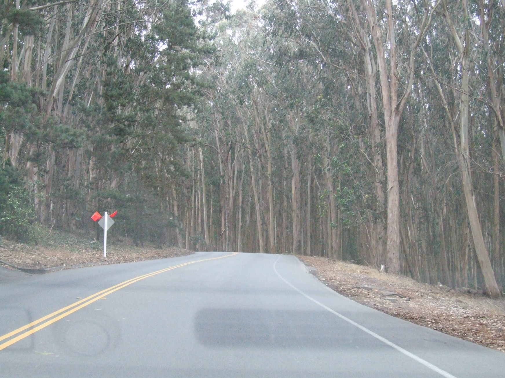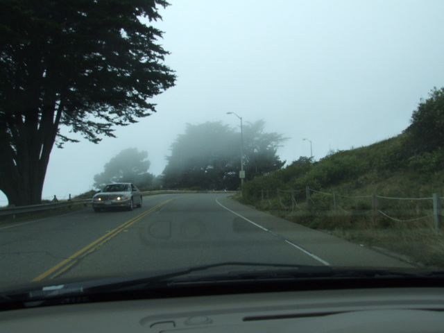 Continuing on, fog blowing across the road.