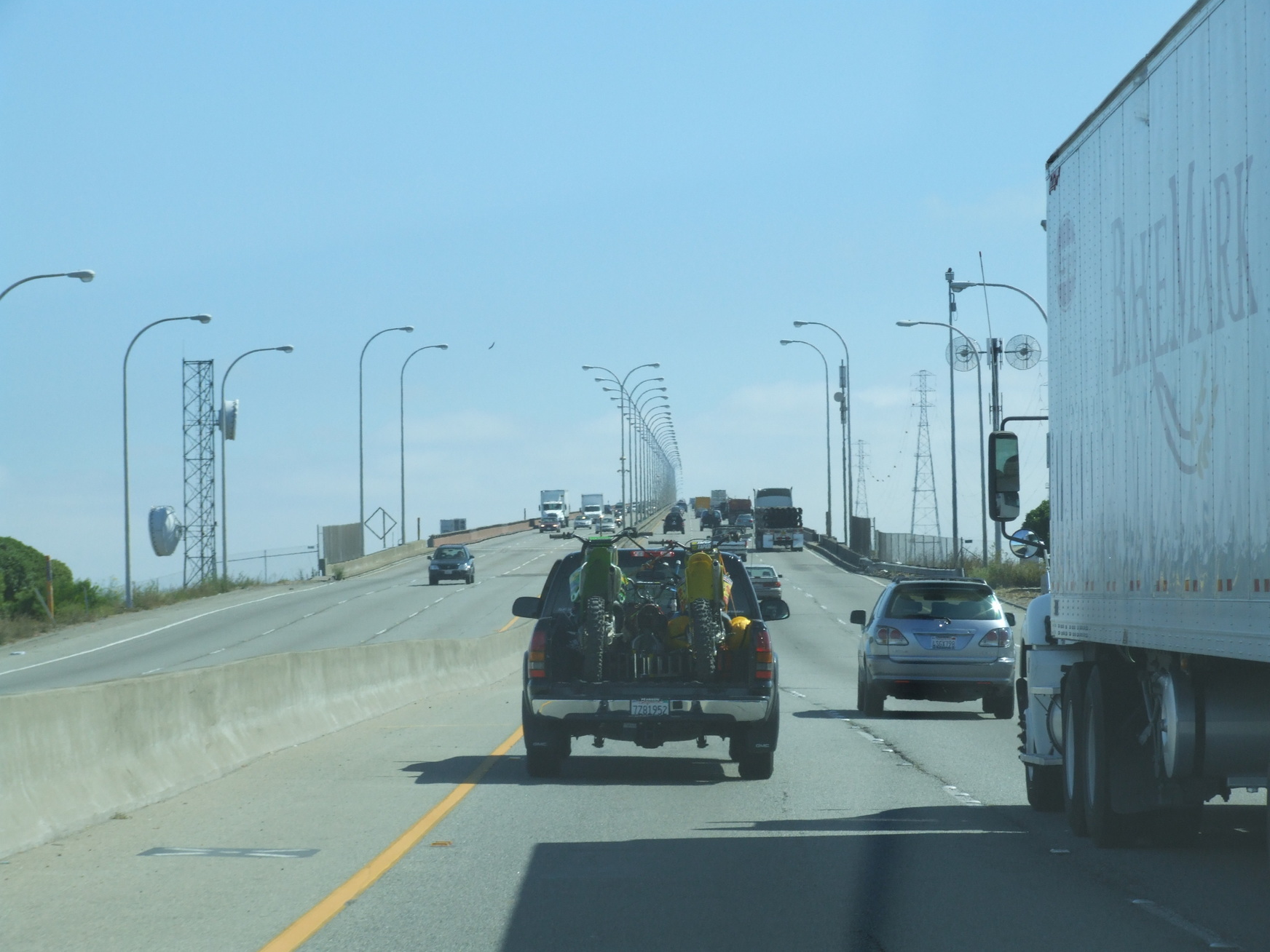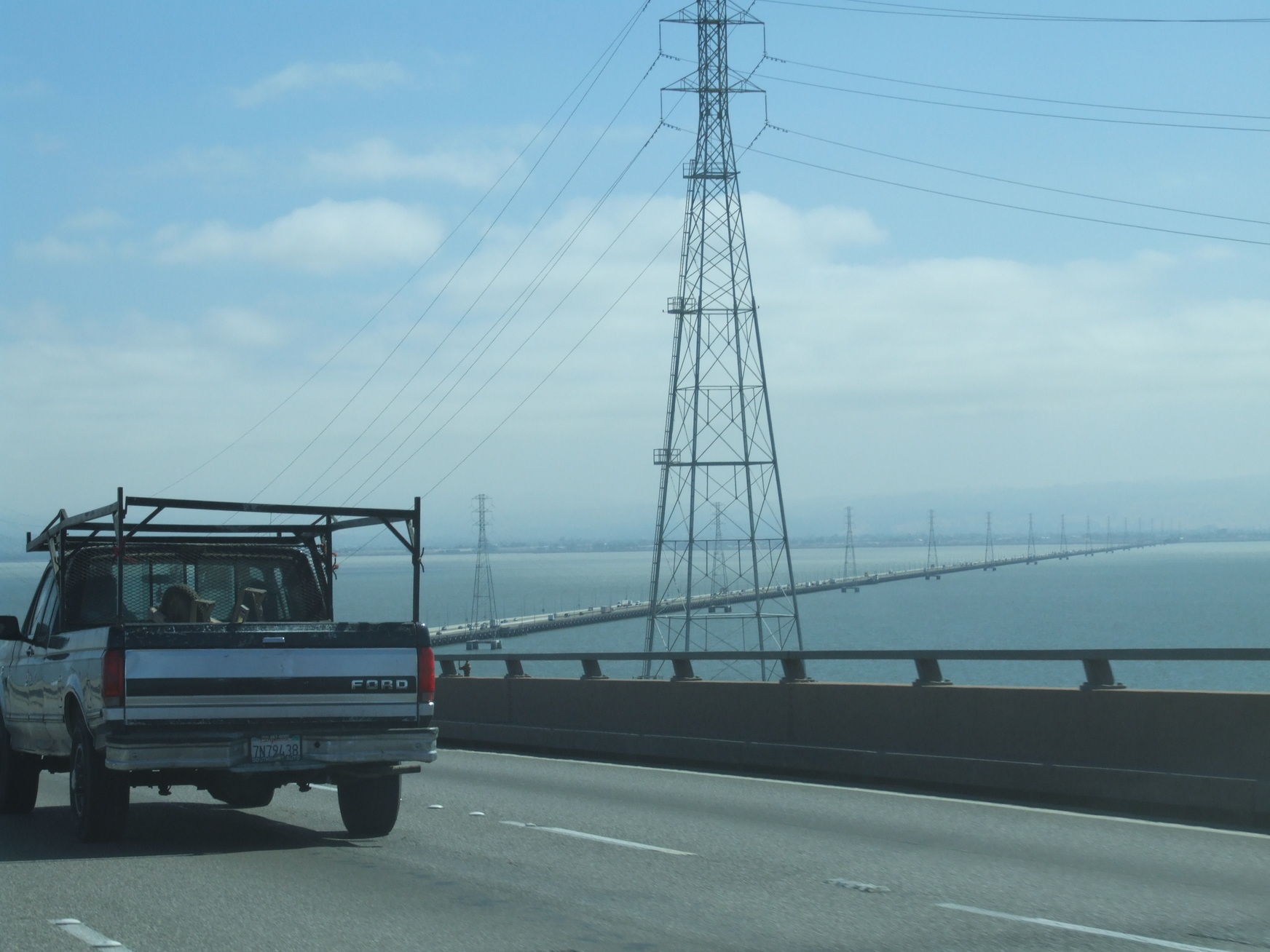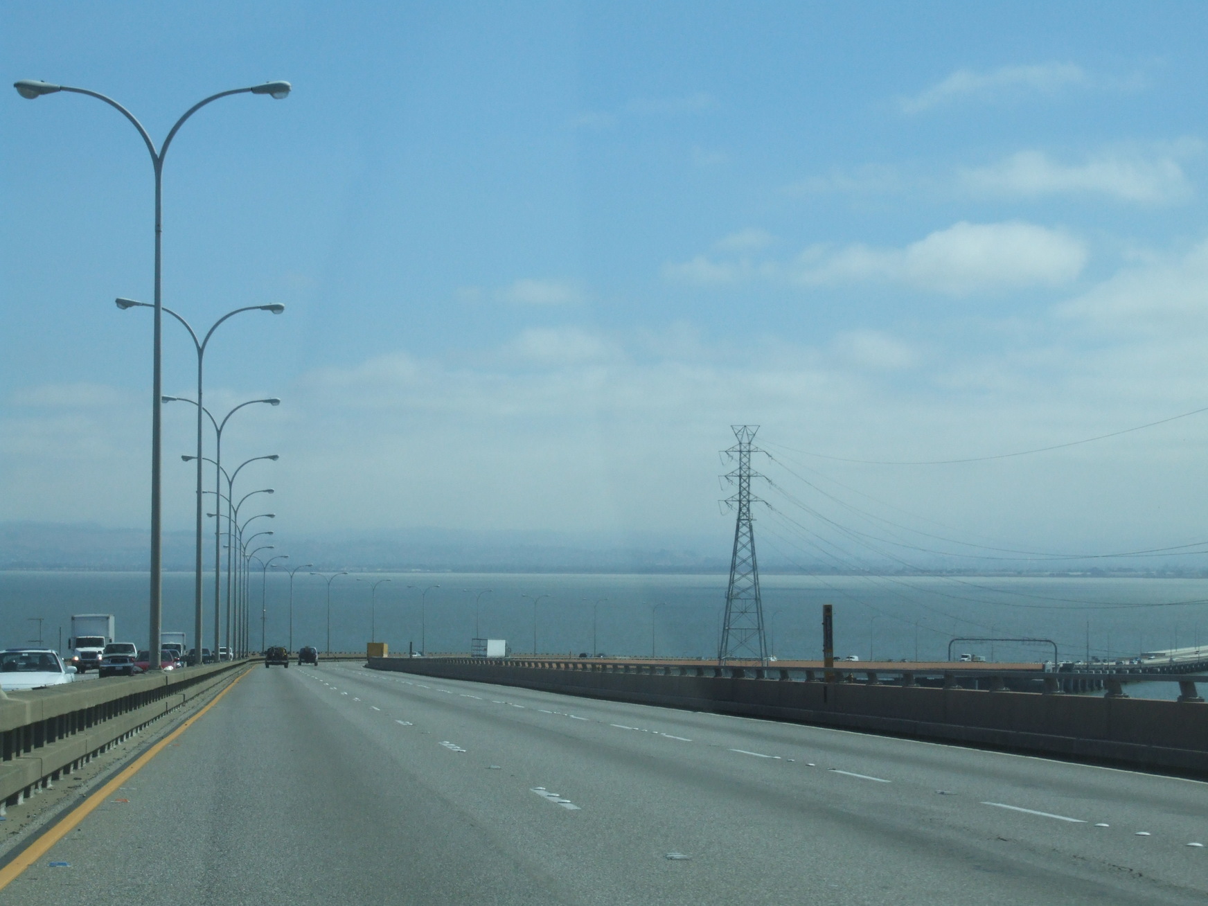 Driving from South San Francisco across the San Mateo-Hayward Bridge.