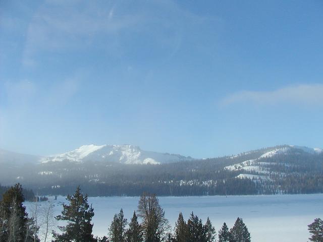 View across a frozen lake near Kirkwood, along California 88.