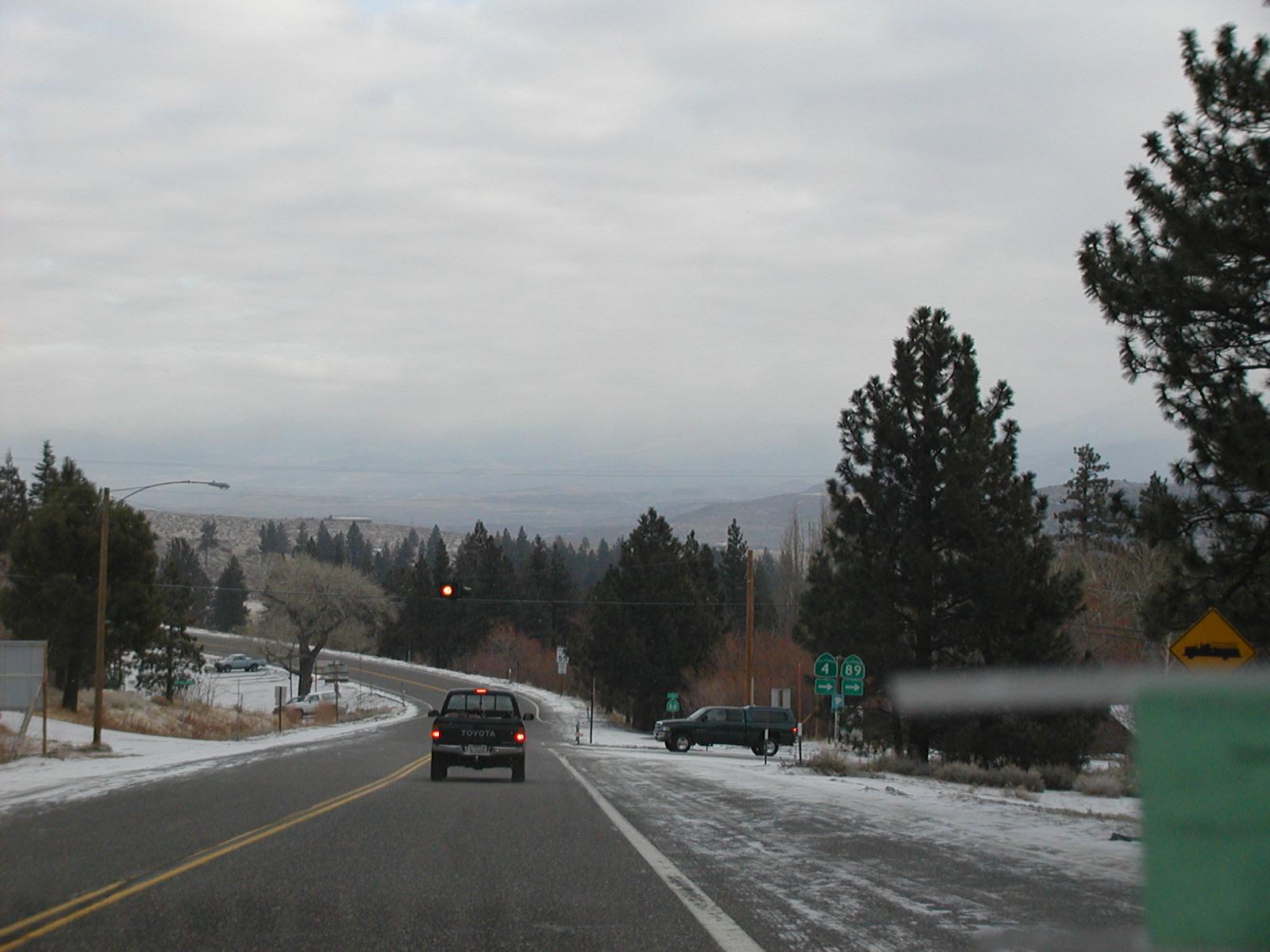 Approaching the junction with California 89, the road north to South