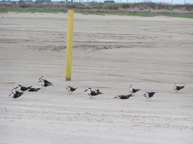 Lots of birds in the parking lot.