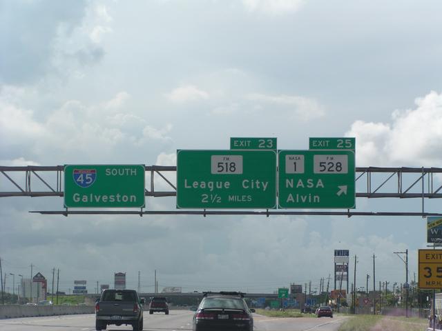 Approaching the exit for the Johnson Space Center.