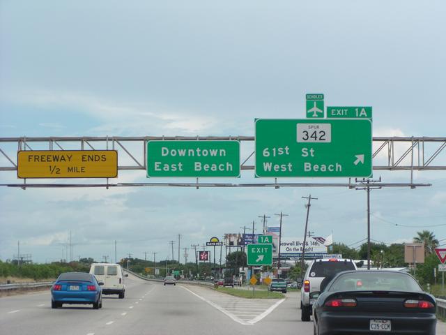 Approaching the southern terminus of I-45 in Galveston.