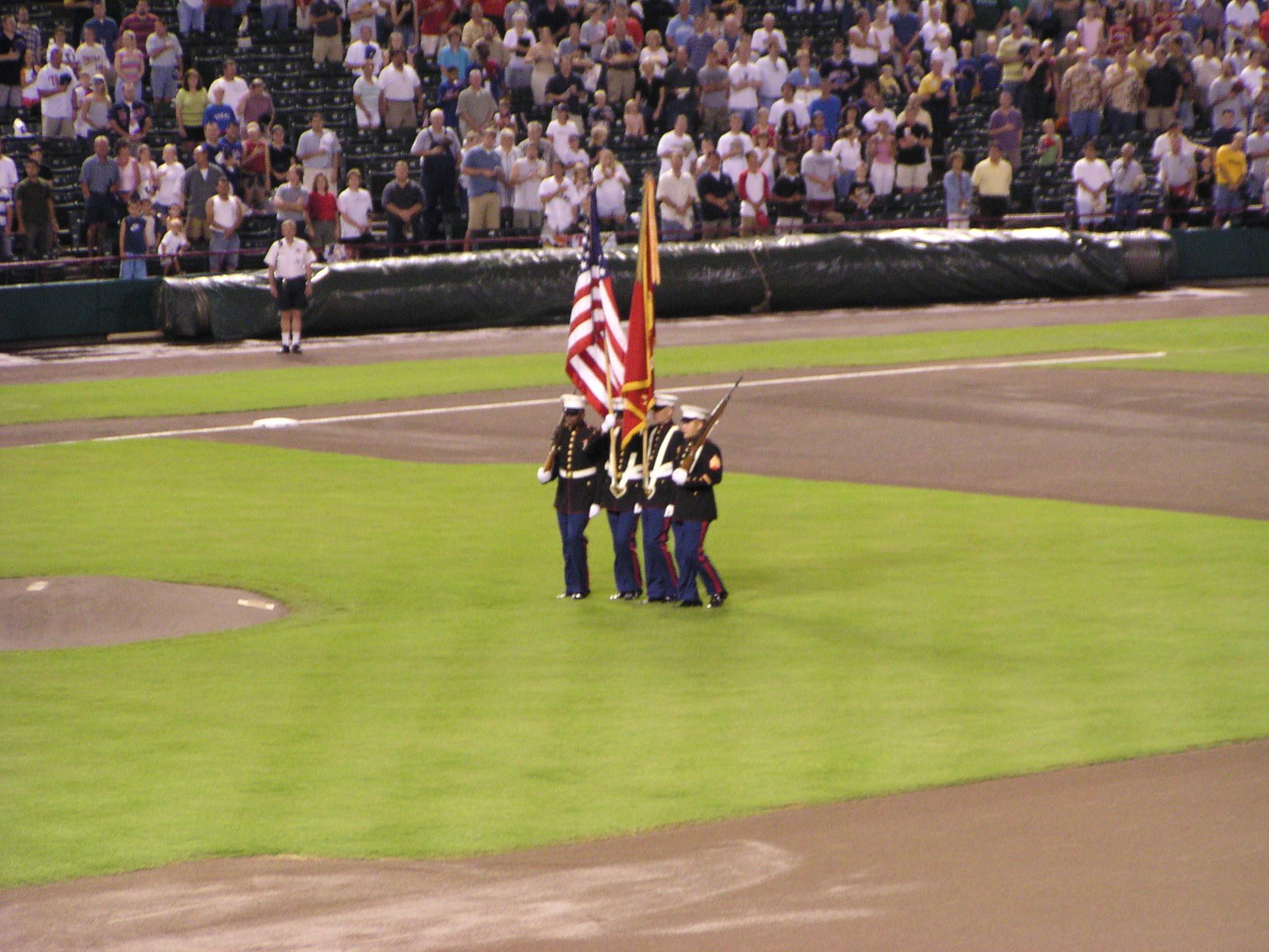 Presenting the colors for the national anthem.