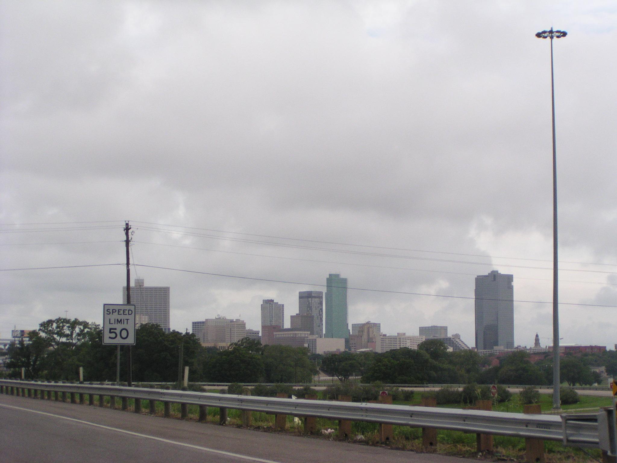 Crossing I-820, the beltway around downtown Fort Worth.