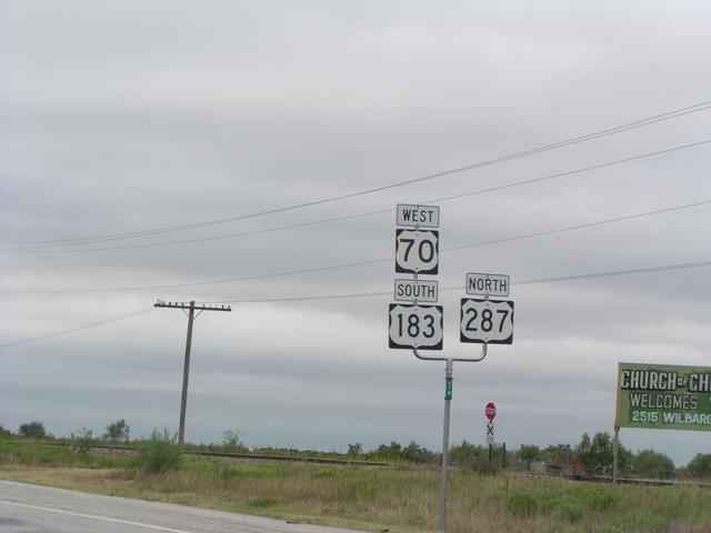 US 70, US 183, and US 287. Too bad there's not an "East" to add to that mess.