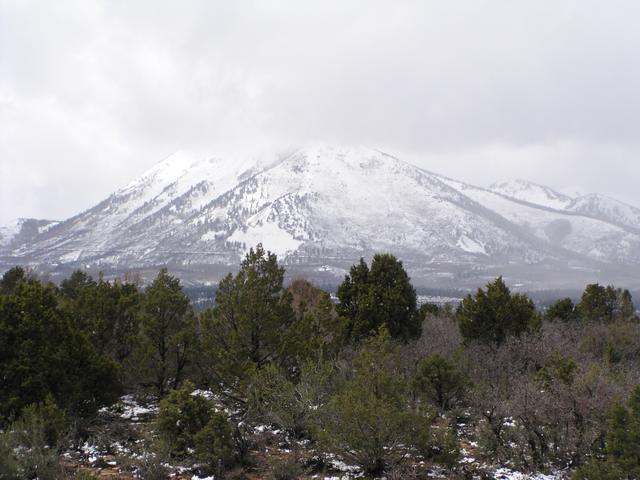 I think this is Abajo Peak, which can be seen in with fall foliage in the pictures from the Fall, 2003, Utah trip.