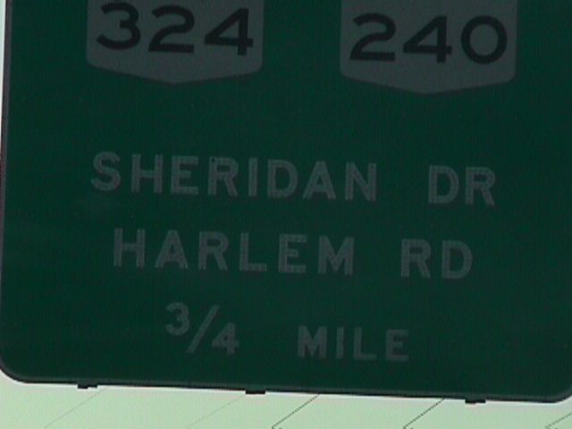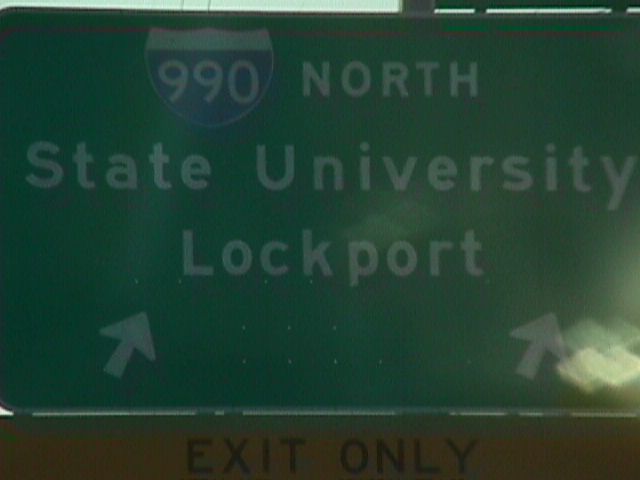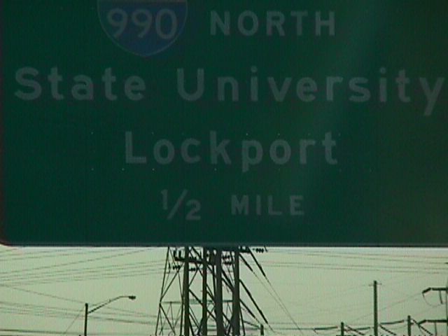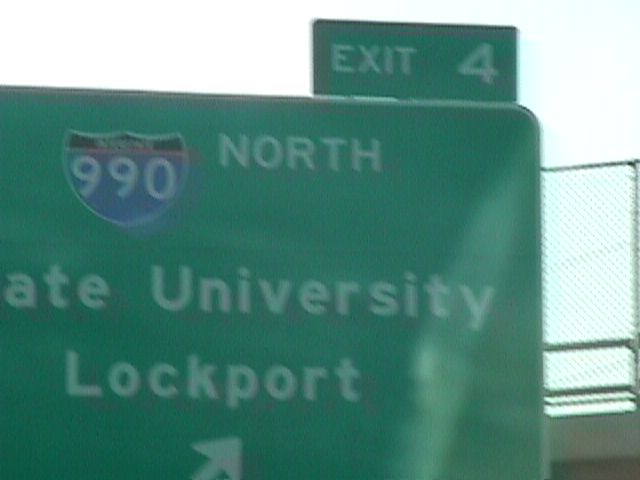 Signs for I-990, the highest-numbered interstate in the system.