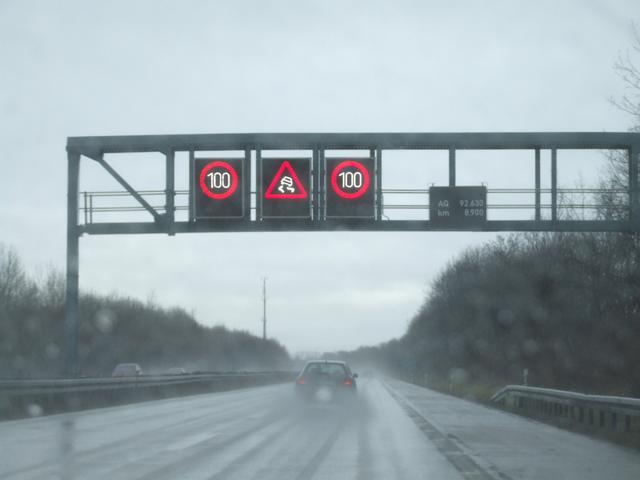 Variable speed limit indicators on the German autobahn. This is A92