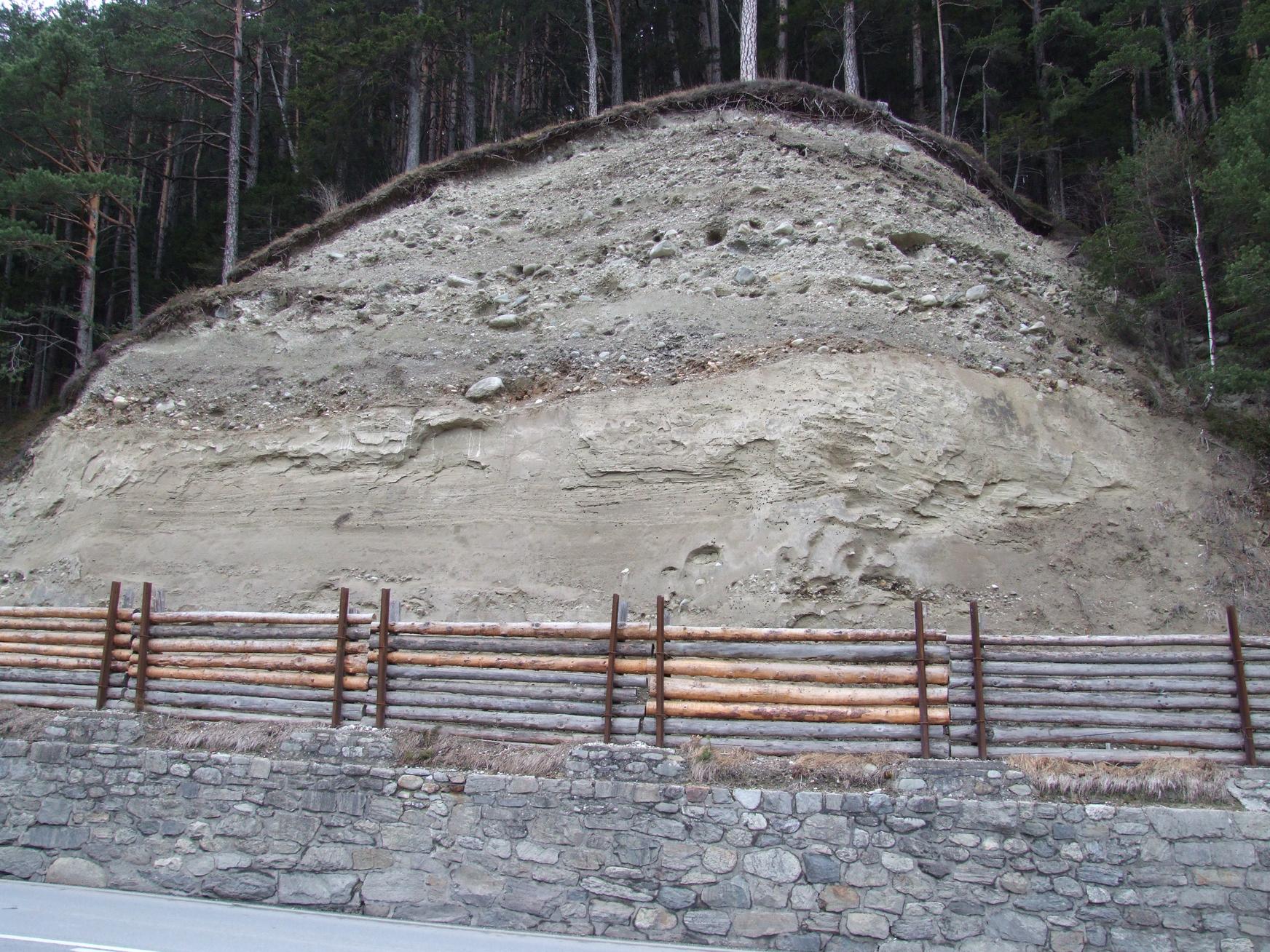 Cut into the sediment across the road from the view of the autobahn bridge.