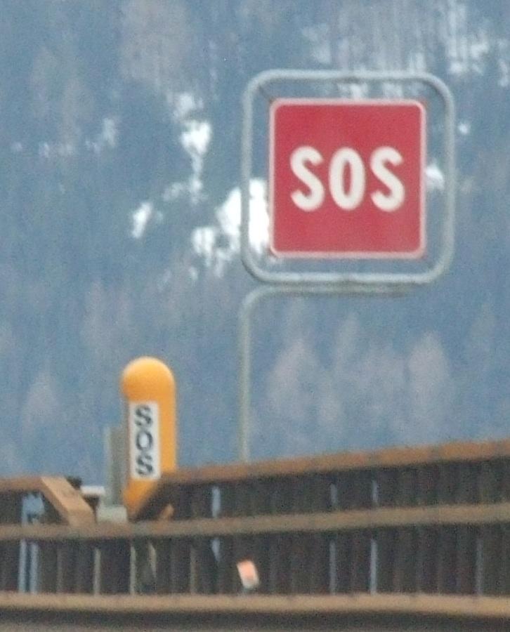The Italian autoroute marks emergency phones with this big red "SOS" sign.