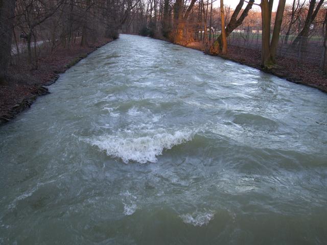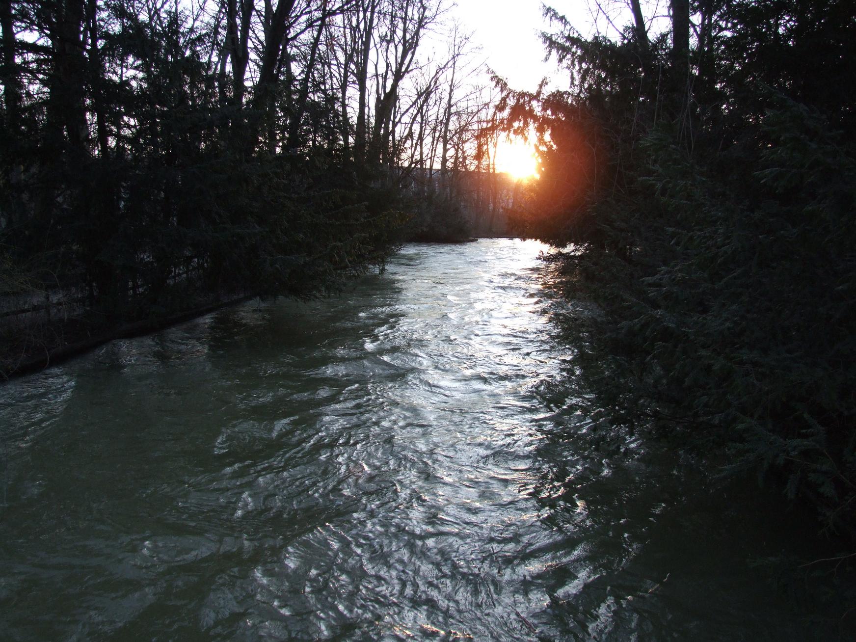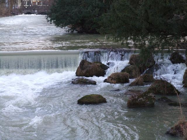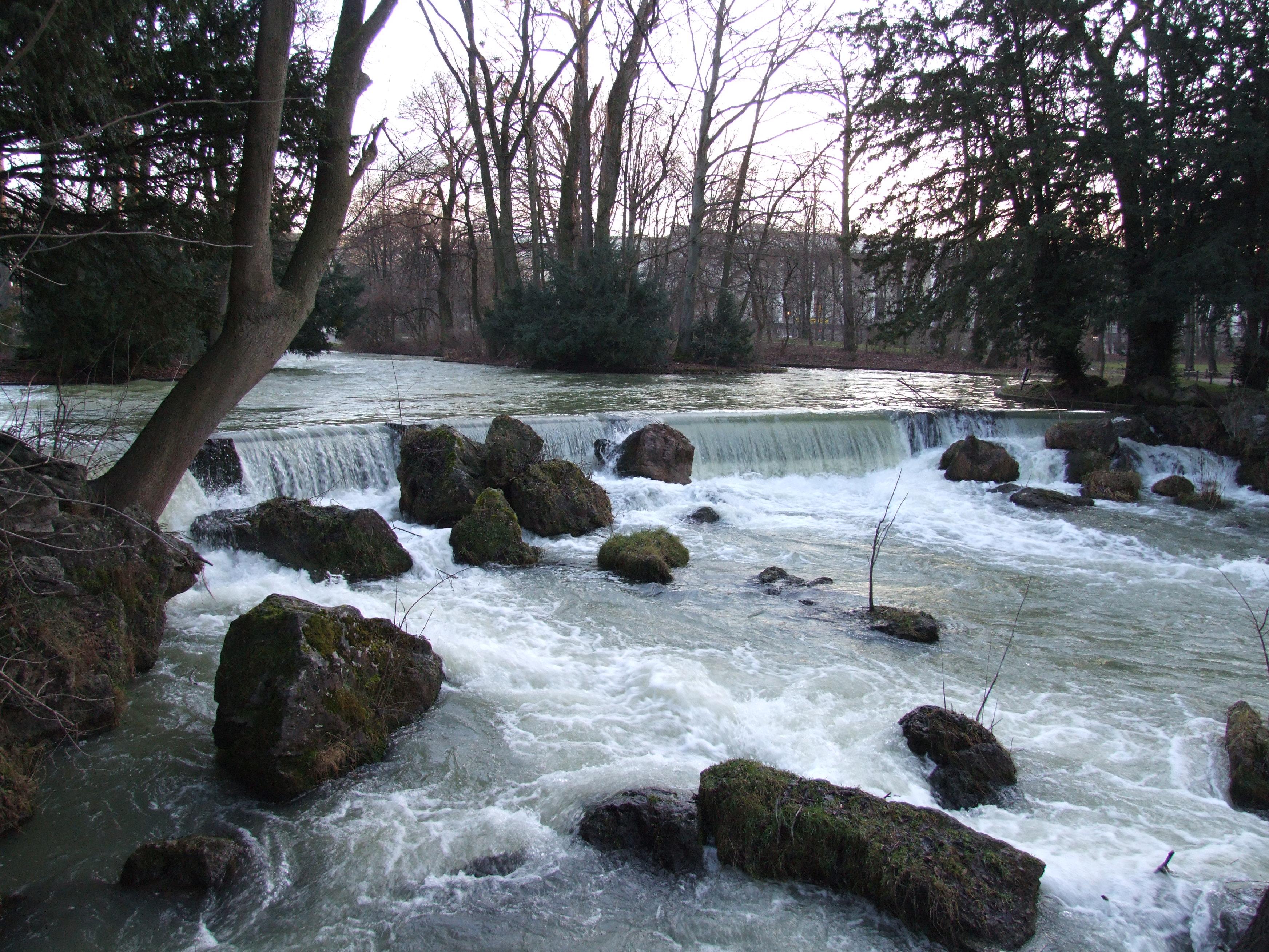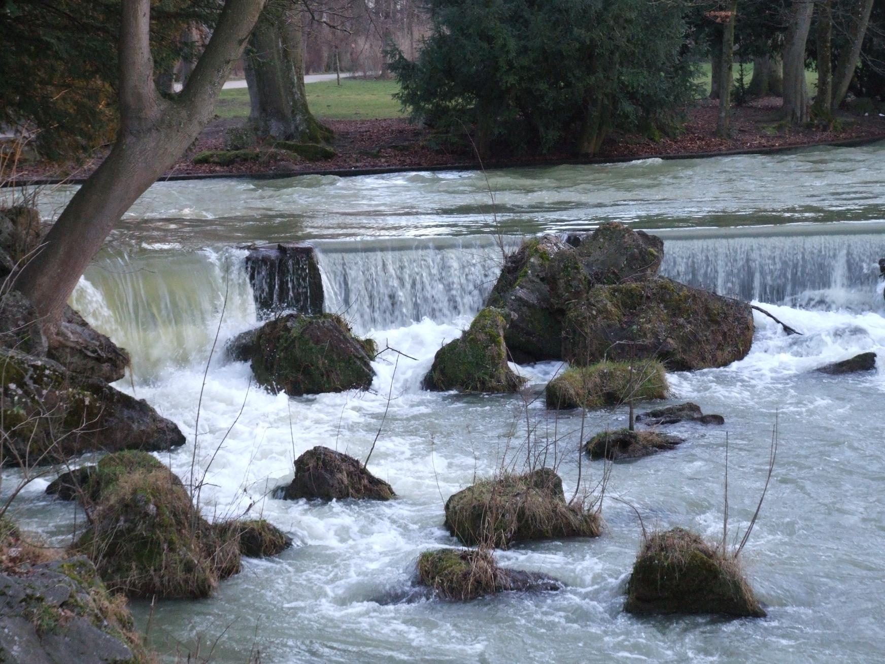 The fast-flowing river through the park.