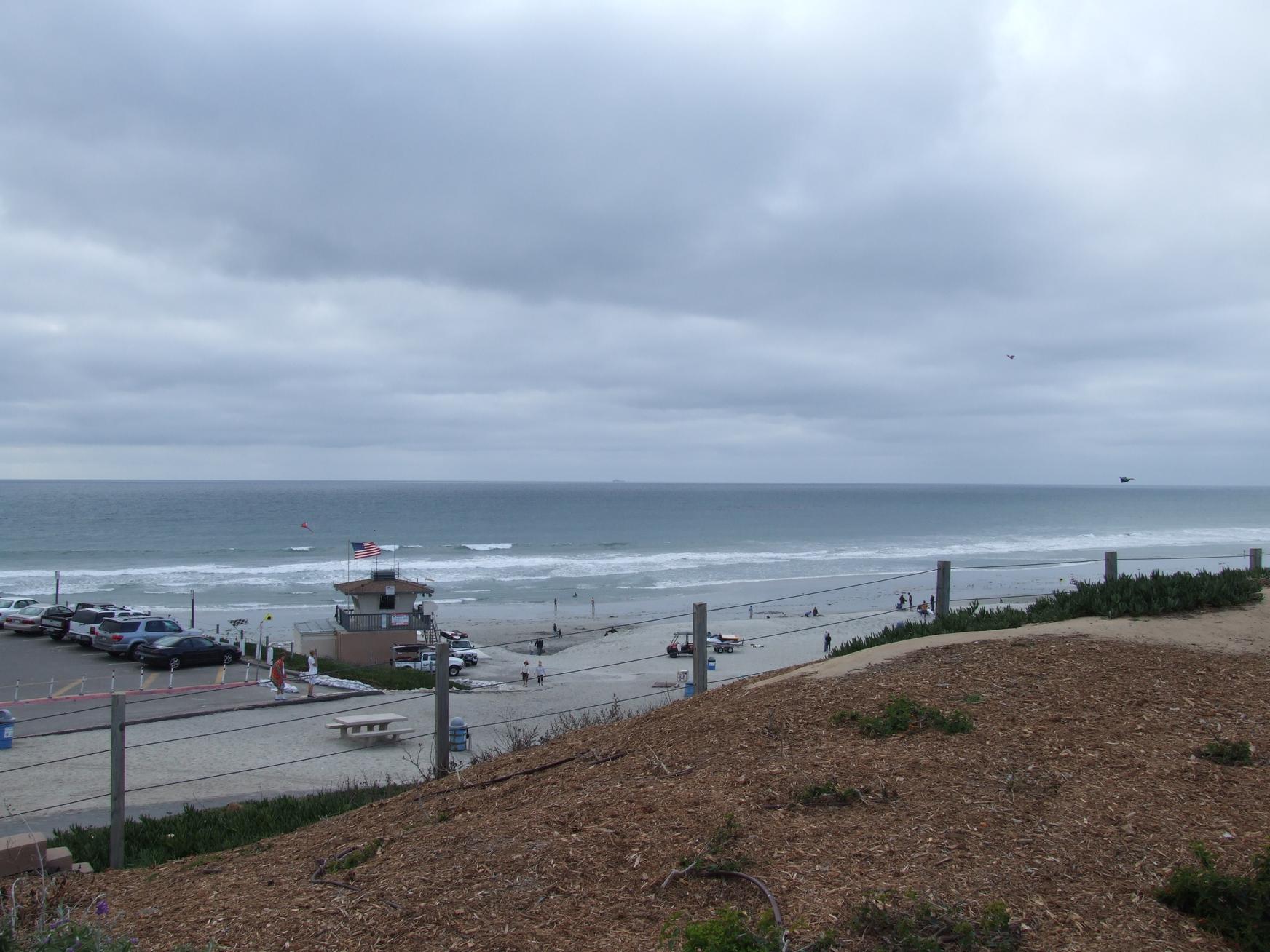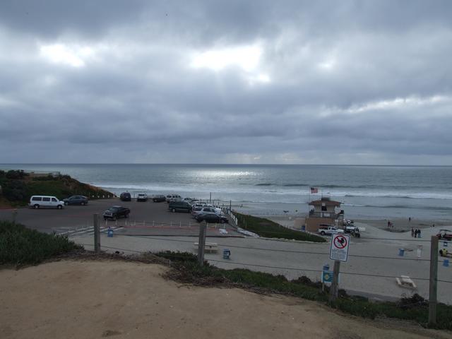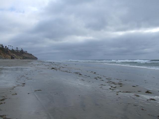 A brief stop at chilly Moonlight Beach in Encinitas, California.