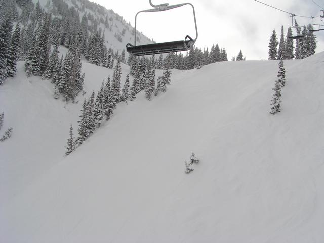 At the edge of Alta - the lift in the center is a Snowbird lift. This