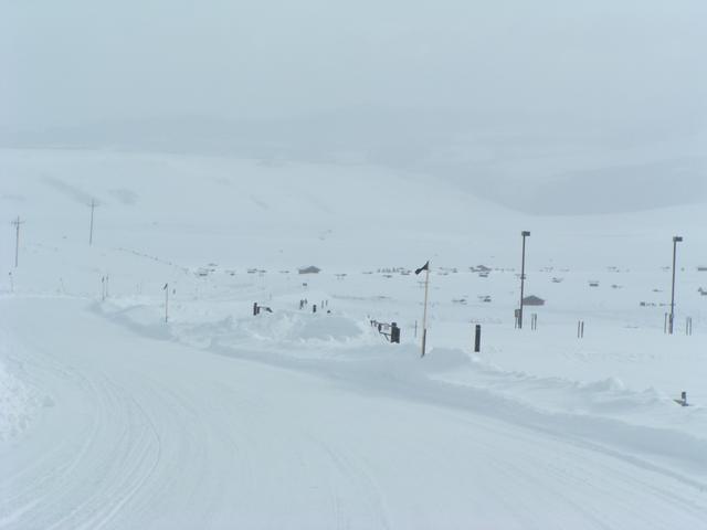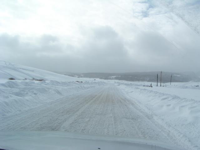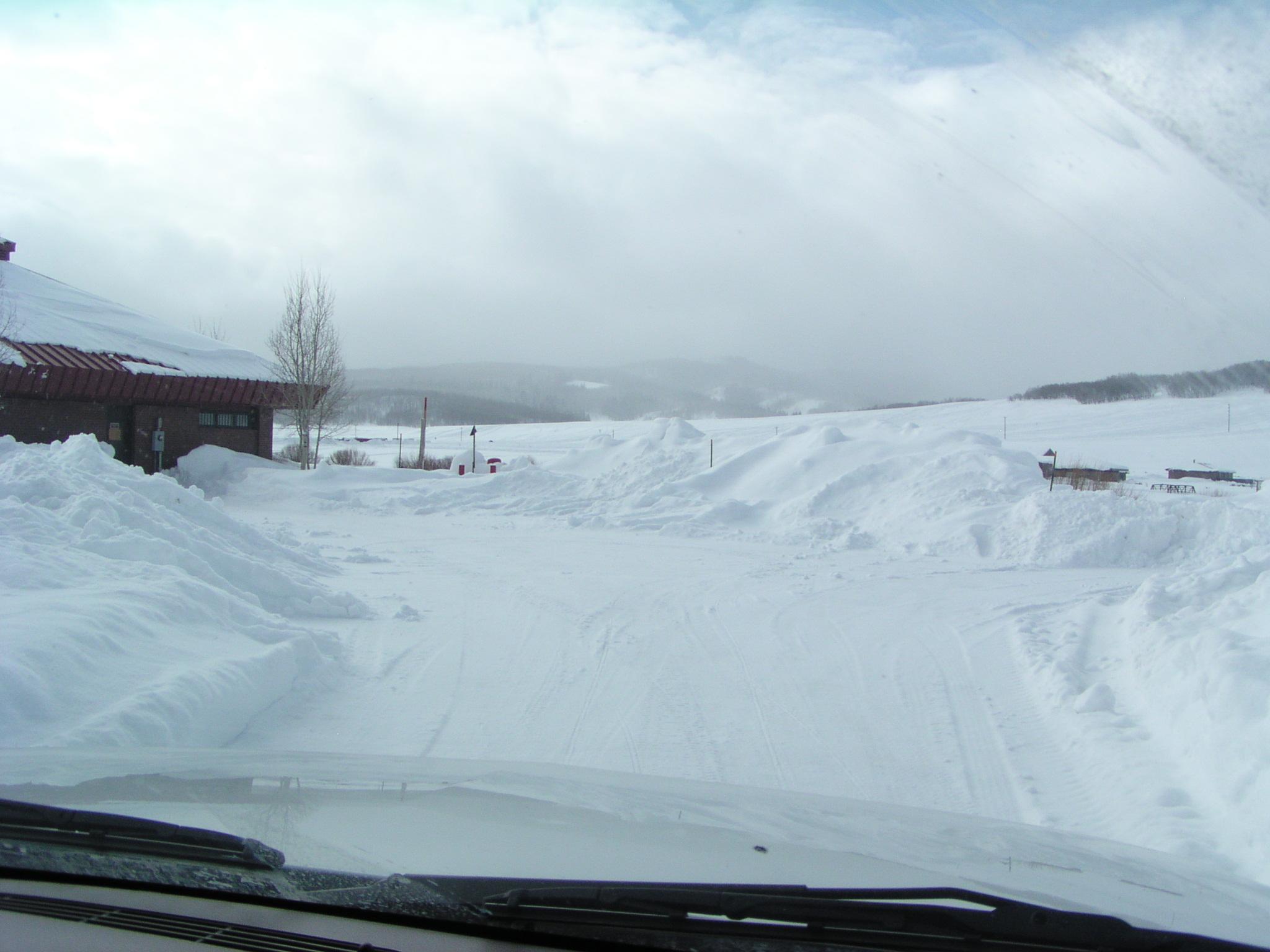 Snowpacked road leading to the reservoir.